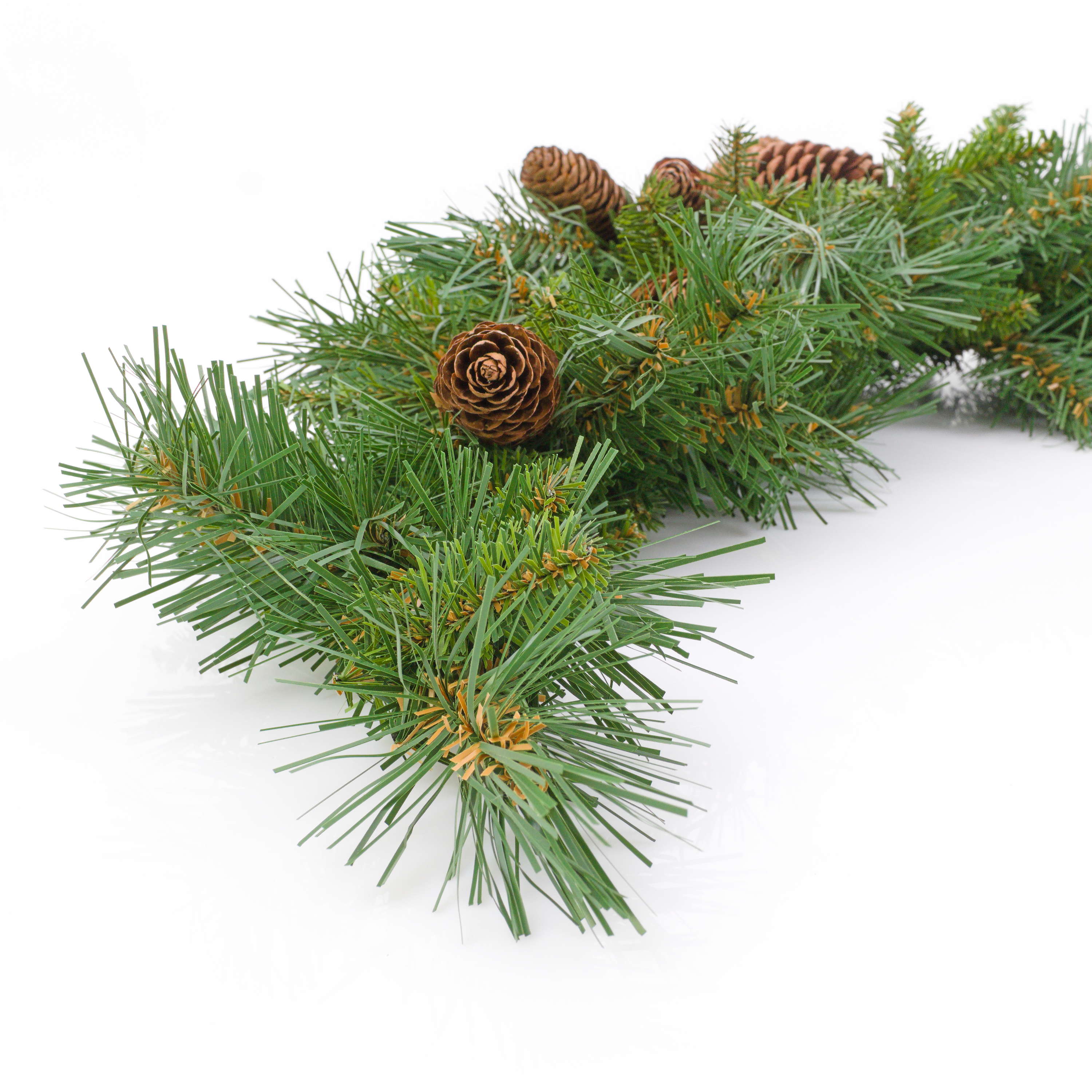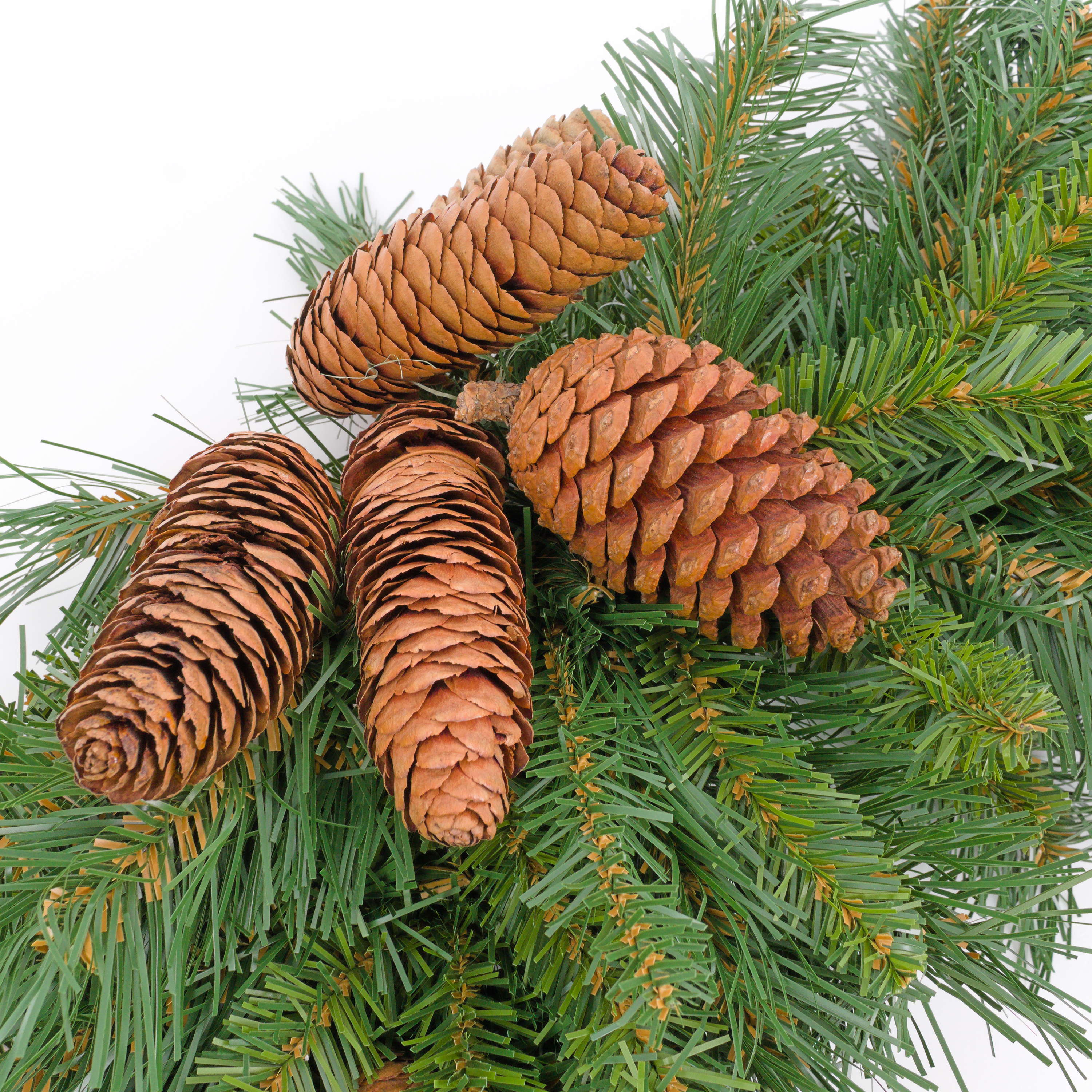 Elegante ghirlanda d'abete artificiale ALFRED ad arco con pigne, ideale come decorazione autunnale. Addobbata con palline di natale, frutta secca, lucine e molto ancora, risulta ideale anche per il periodo natalizio.
