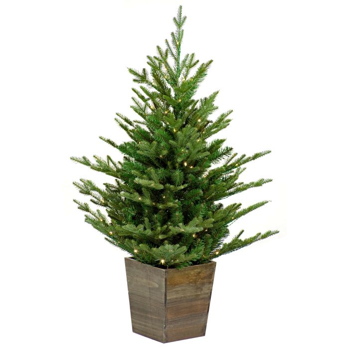 Abete artificiale CARDIFF, vaso in legno, LEDs, 90cm, Ø75cm