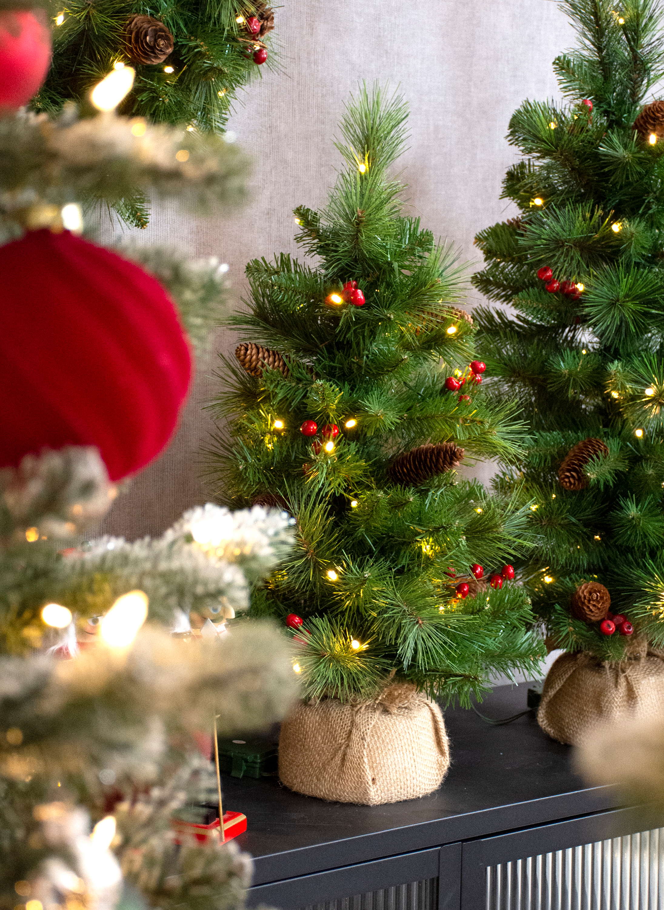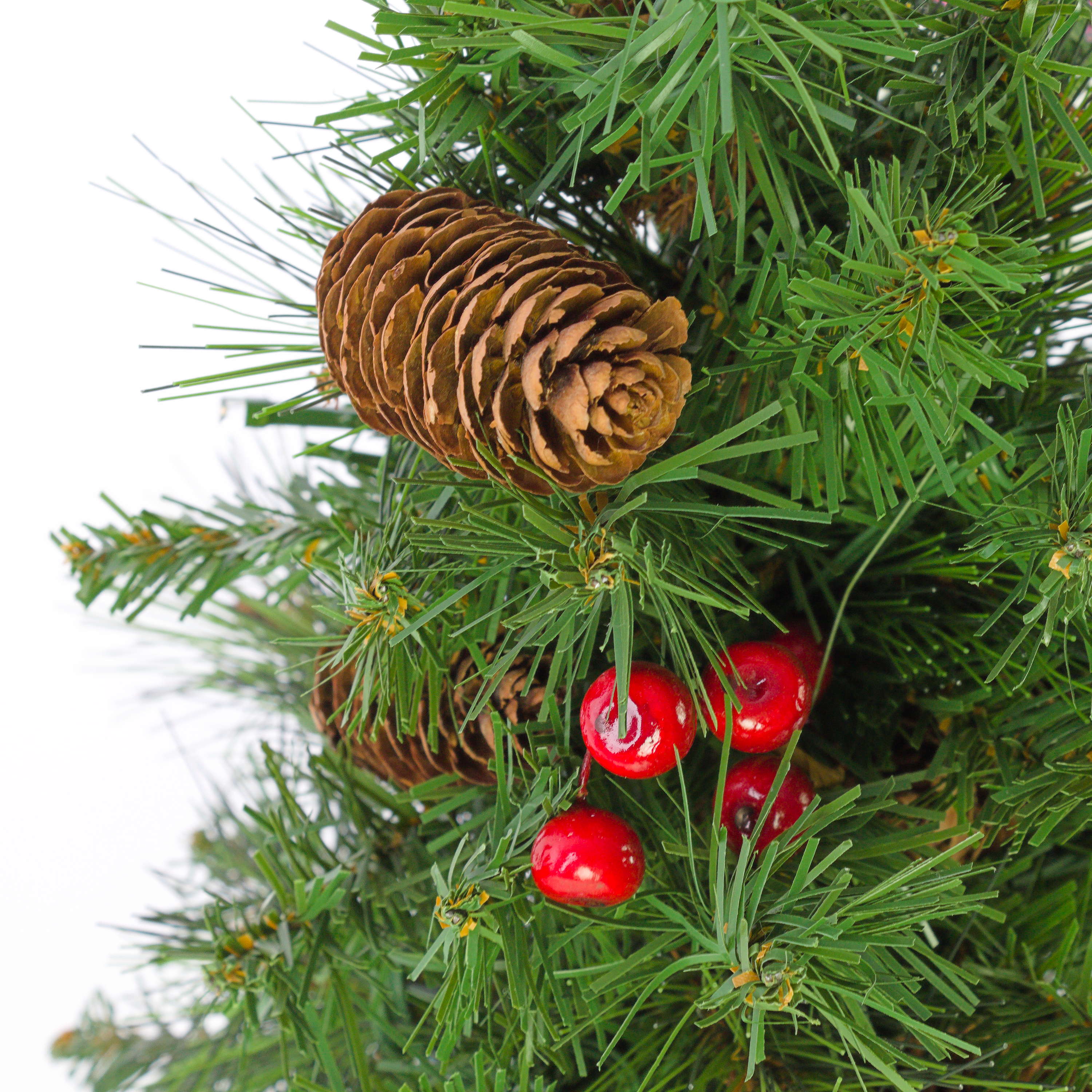 Mini albero di natale BUKAREST con ribes rosso, pigne e lucine
