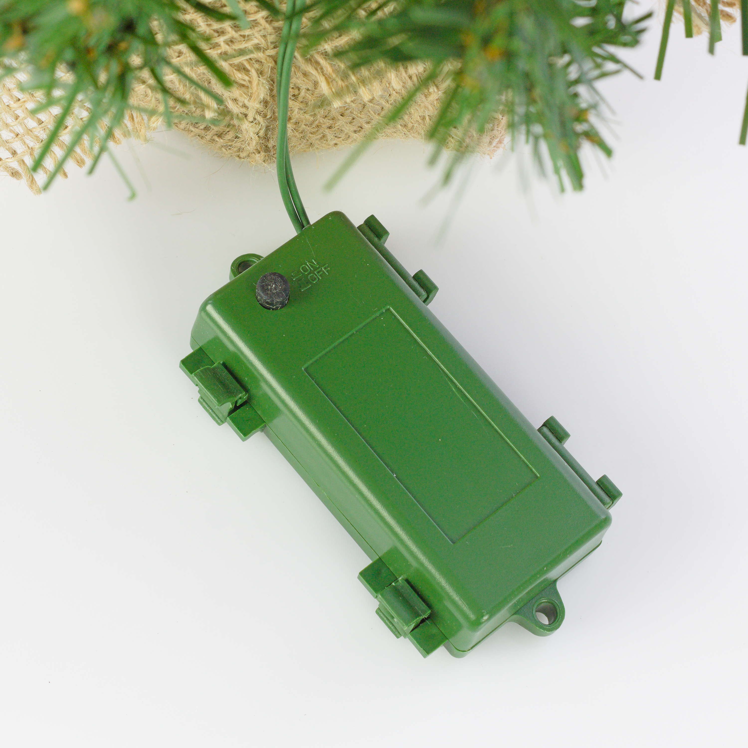 Abete finto BUKAREST, pigne, sacco iuta, decorato, LEDs, 45cm, Ø25cm