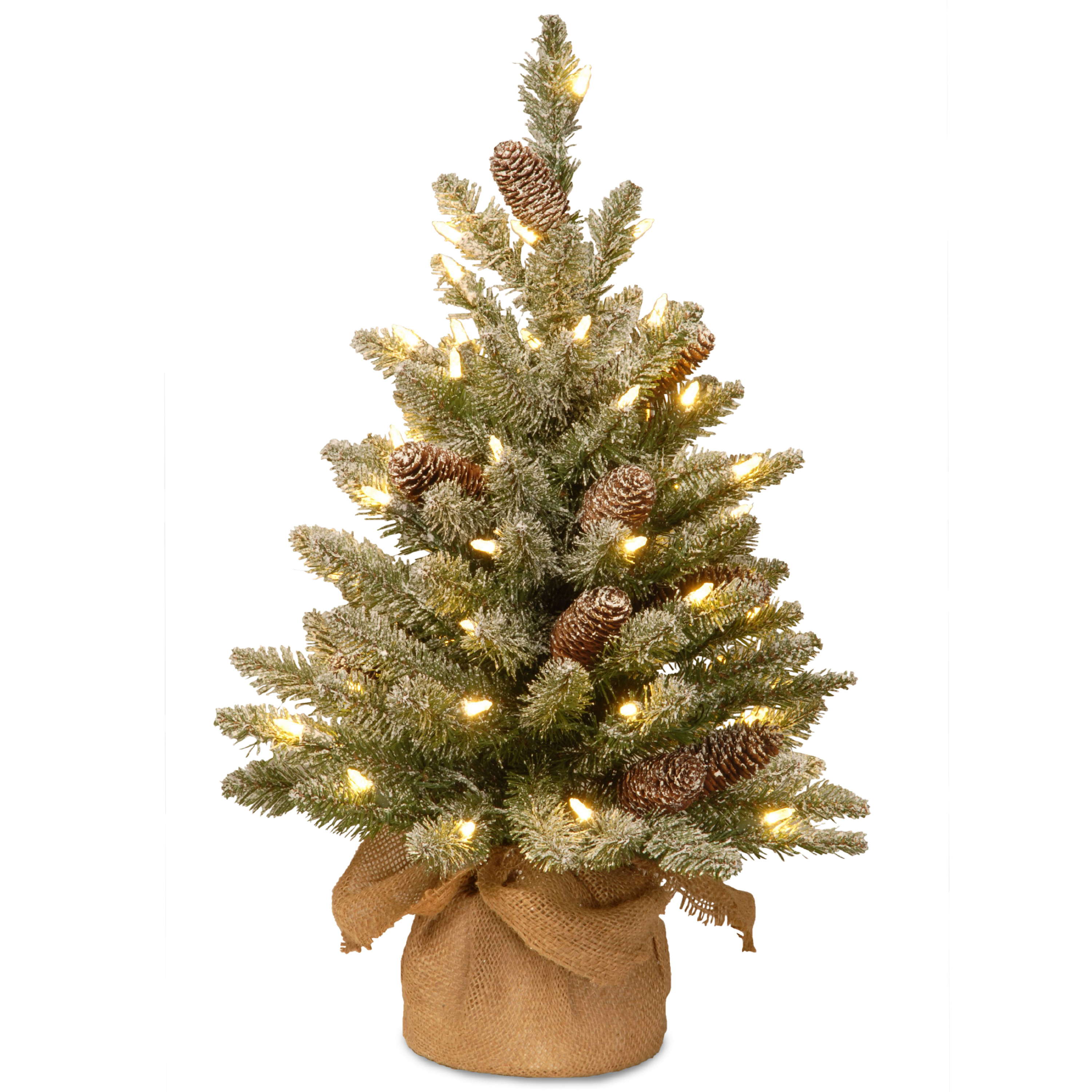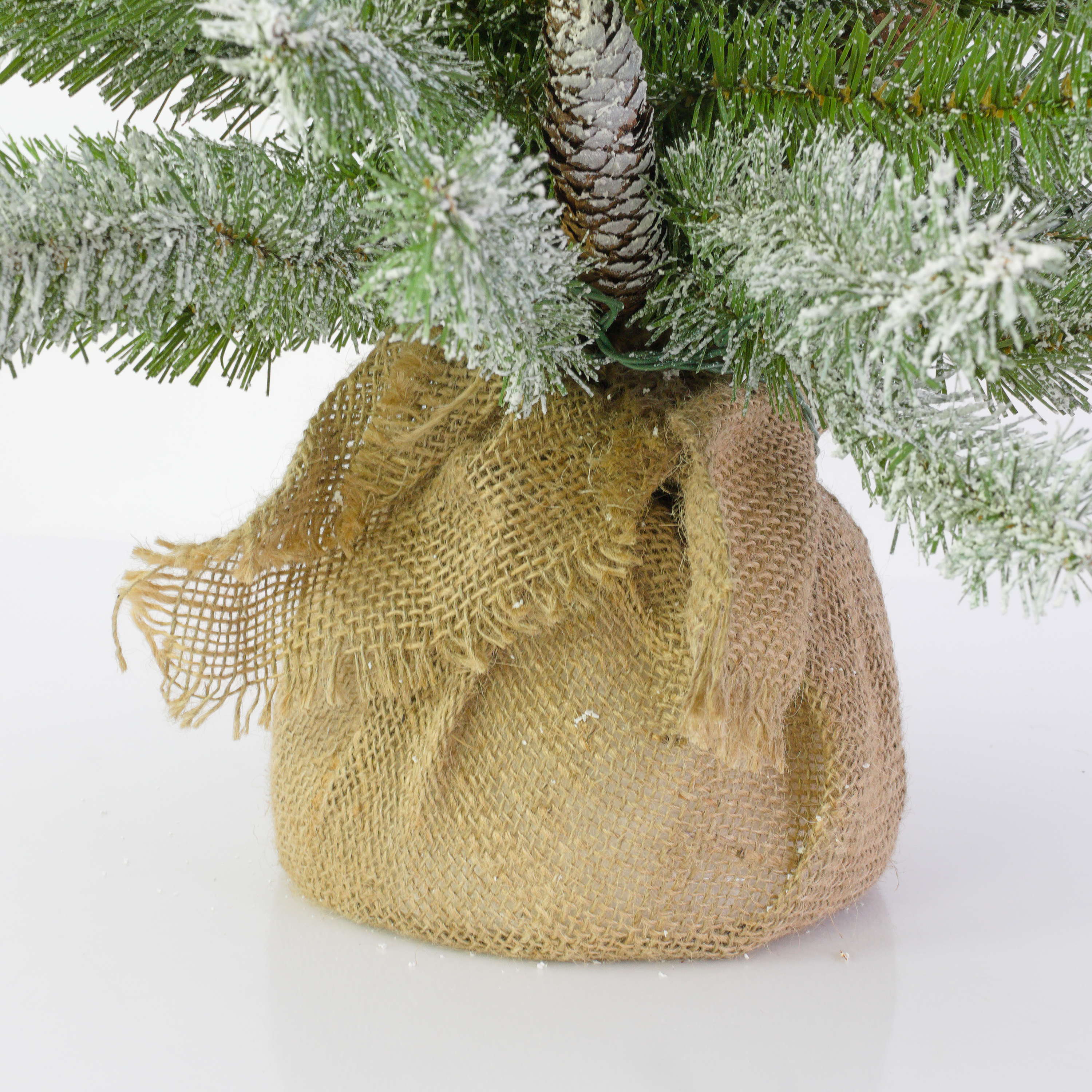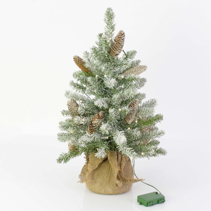 Abete finto WIEN, pigne, sacco di iuta, LEDs, innevato, 60cm, Ø40cm
