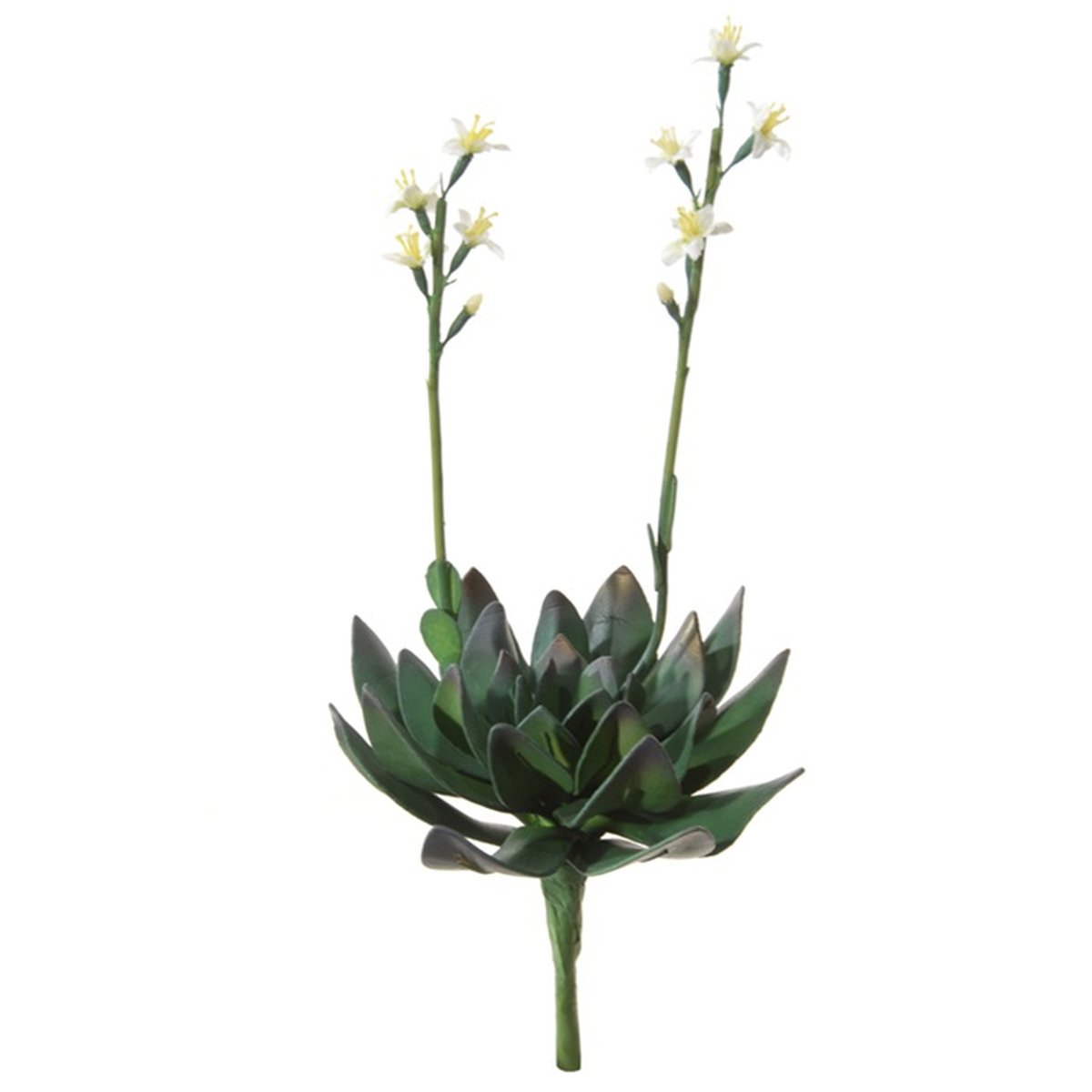 Aeonium artificiale LILKA con fiori, gambo, verde-bianco, 35cm