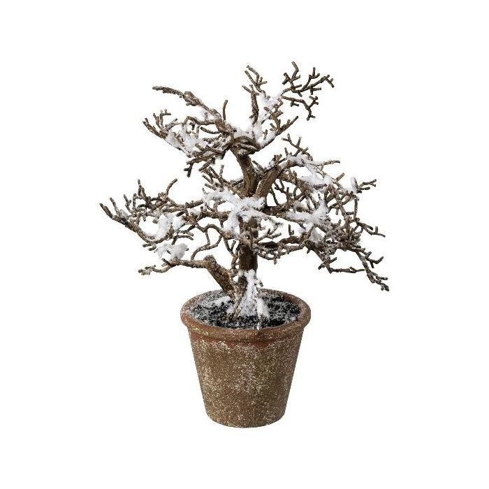 Albero artificiale faggio BONKA, senza foglie, innevato, vaso decorativo, bianco-marrone, 24 cm