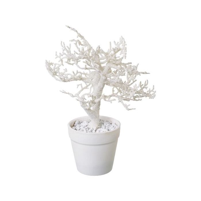 Albero artificiale faggio BONKA, senza foglie, vaso decorativo, bianco, 24 cm