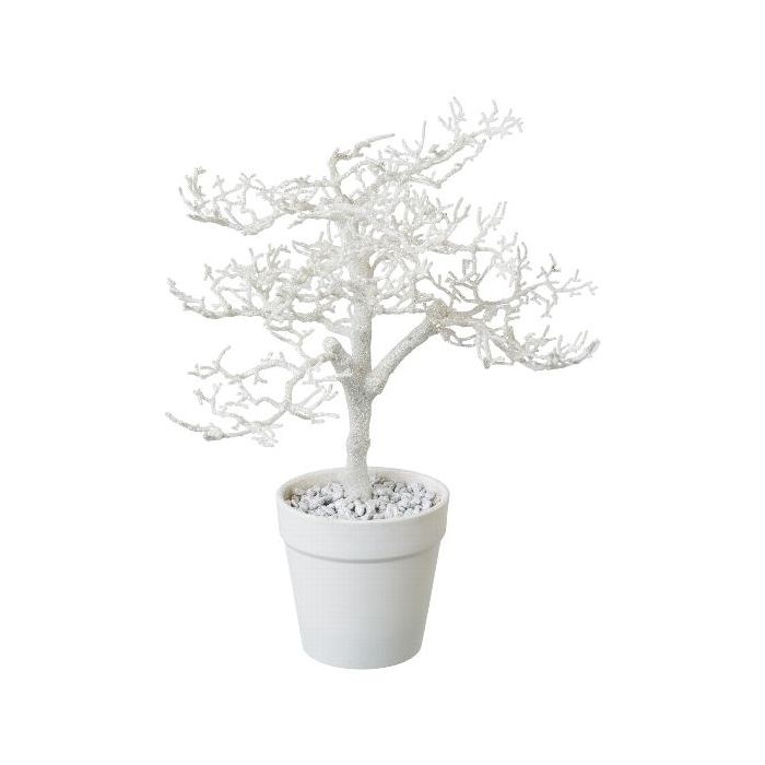 Albero artificiale faggio BONKA, senza foglie, vaso decorativo, bianco, 28 cm