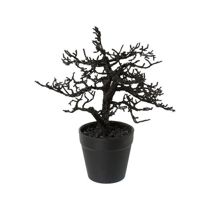 Albero artificiale faggio BONKA, senza foglie, vaso decorativo, nero, 24 cm