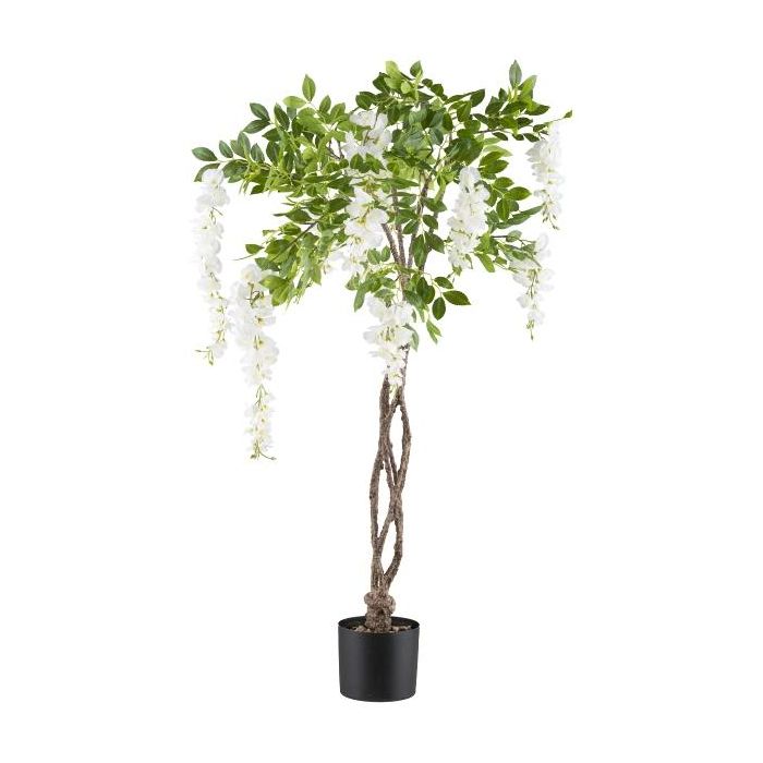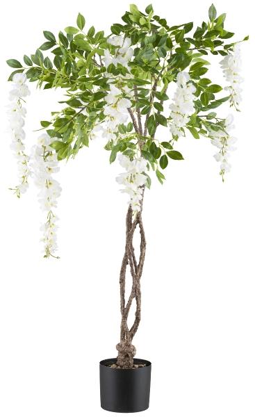 Albero artificiale glicine SINKE con fiori, tronco artificiale intrecciato, bianco, 115 cm