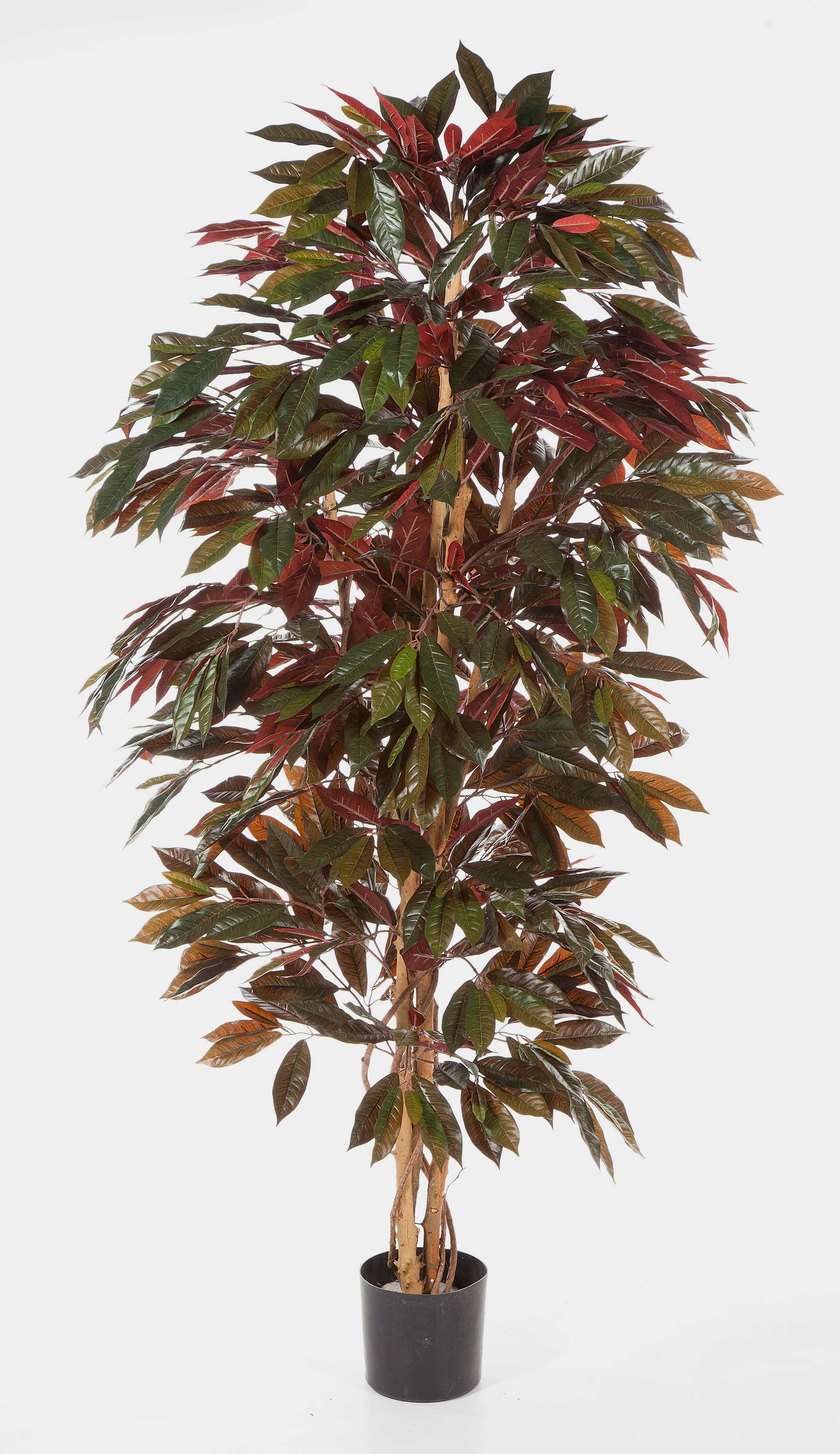 L'albero artificiale CARA ha un vero tronco marrone e numerosi rametti sottili. L'elegante pianta tropicale è alta circa 210 cm e grazie alle sue foglie ovali verde-rosse porta un tocco di autunno nelle vostre stanze.