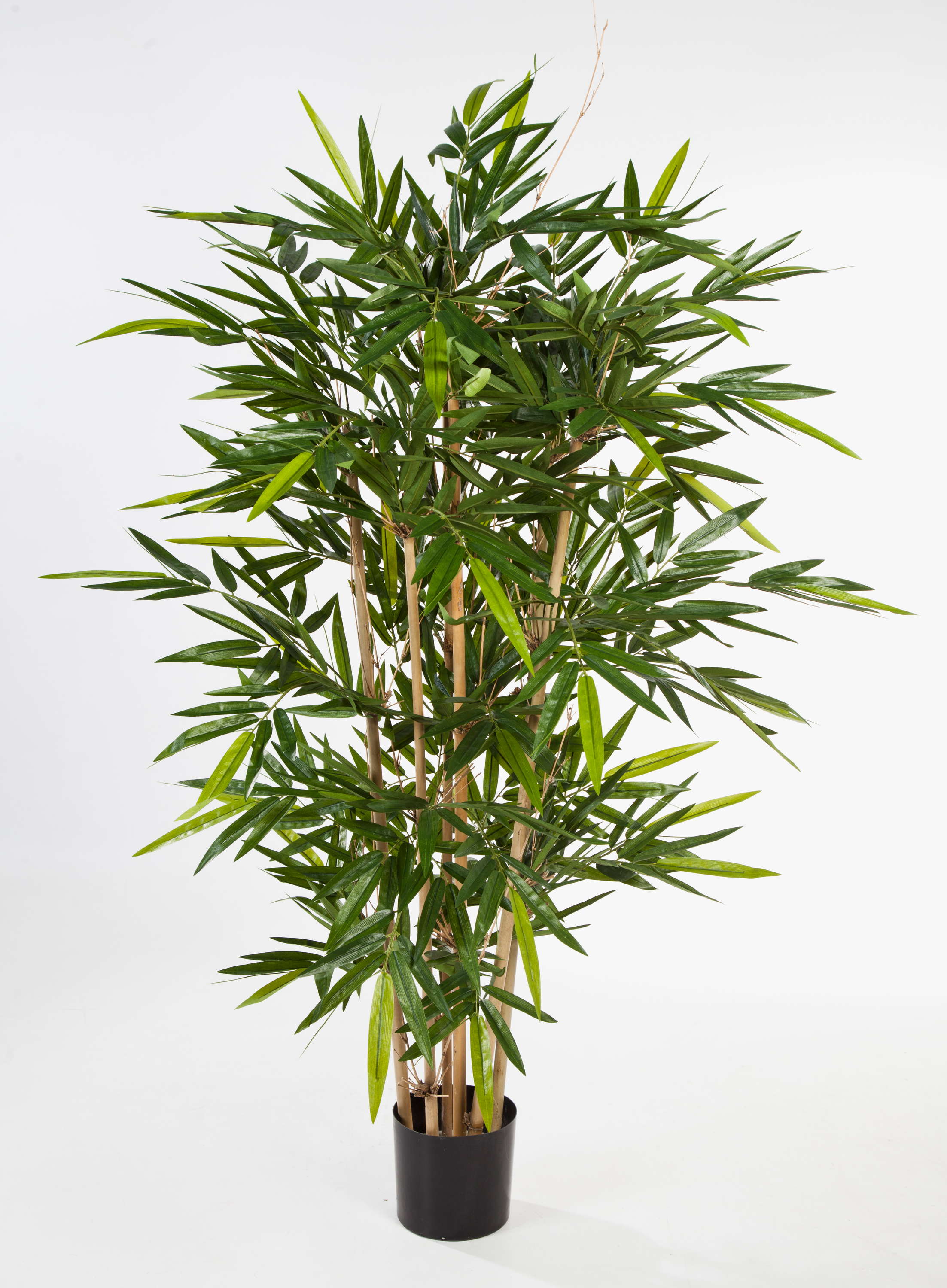 Albero di bambù decorativo con molteplici fusti in legno naturale ed un'altezza complessiva di ca.180 cm. La sua folta chioma è costituita da 1215 foglie.