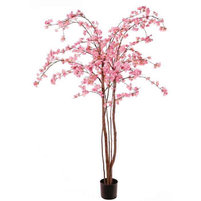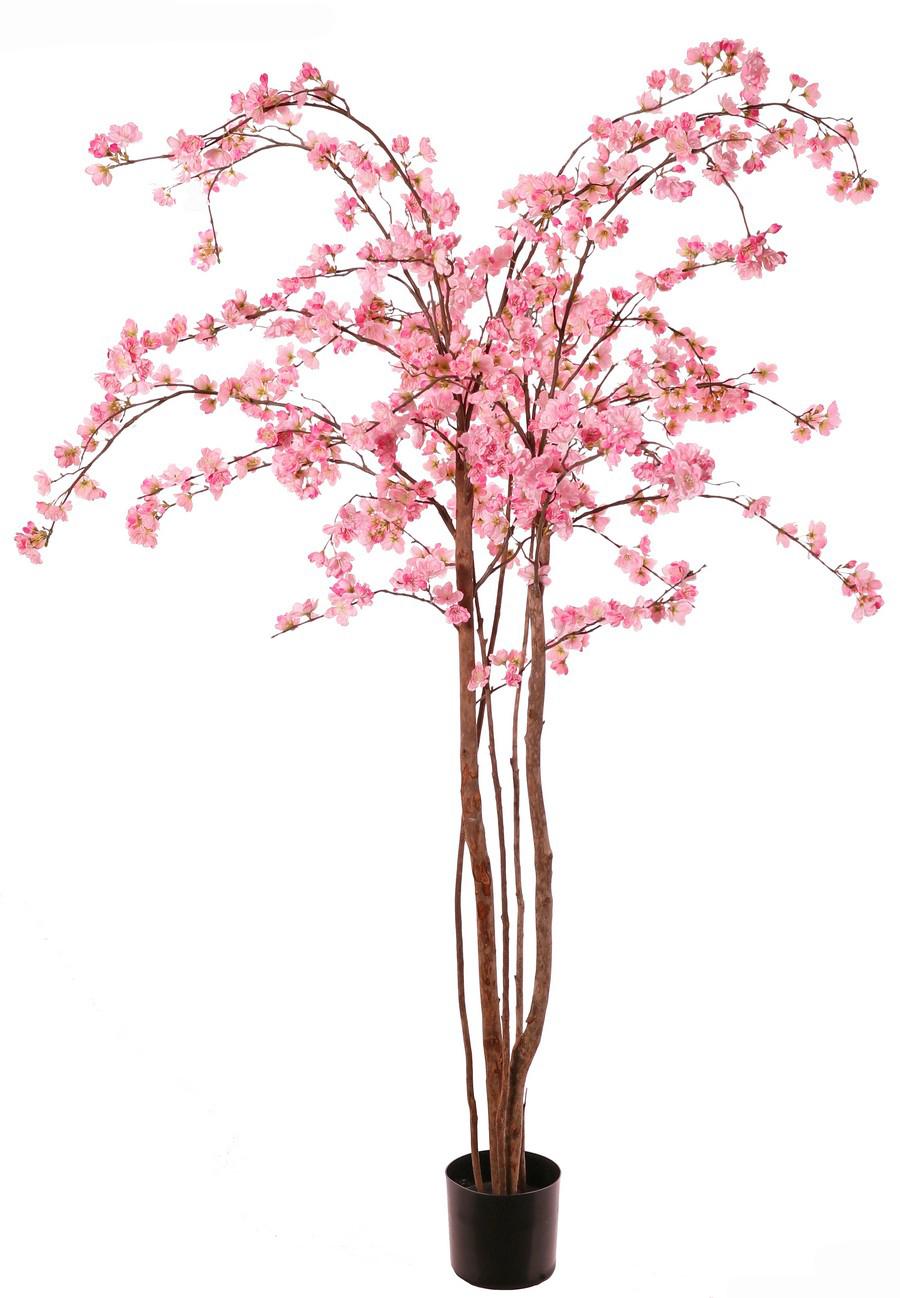 Albero di ciliegio artificiale PONFYN con fiori, tronchi naturali, rosa, 175 cm