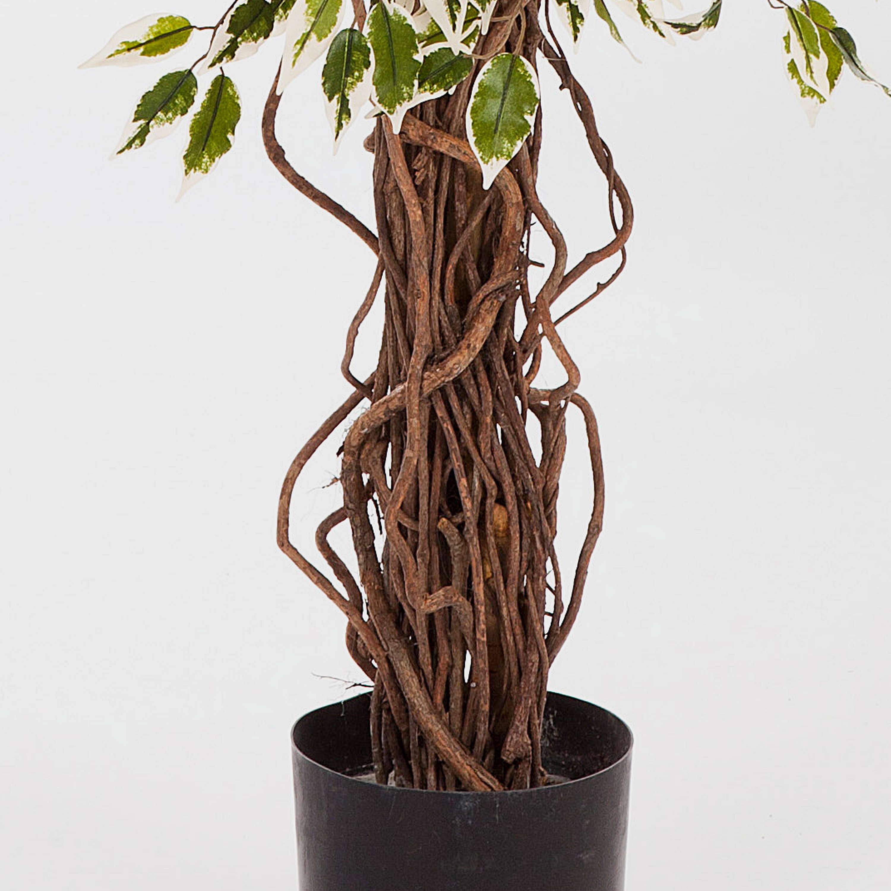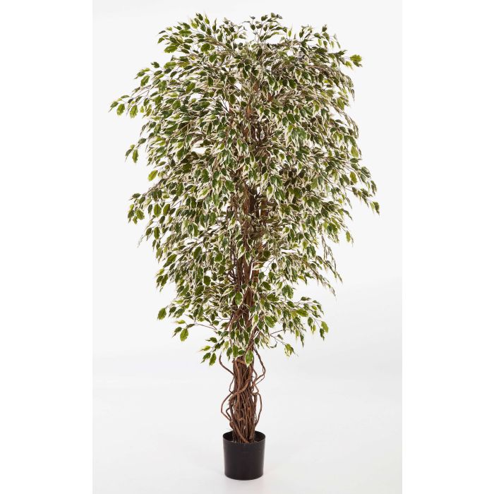 Il Ficus ornamentale DAKU ha un aspetto realistico e grazioso, dato dai numerosi tronchi in vero legno e dalle ca. 4100 foglie verdi e bianche ben lavorate. L'altezza complessiva di questo ficus artificiale, vaso incluso, è pari a ca. 210 cm.