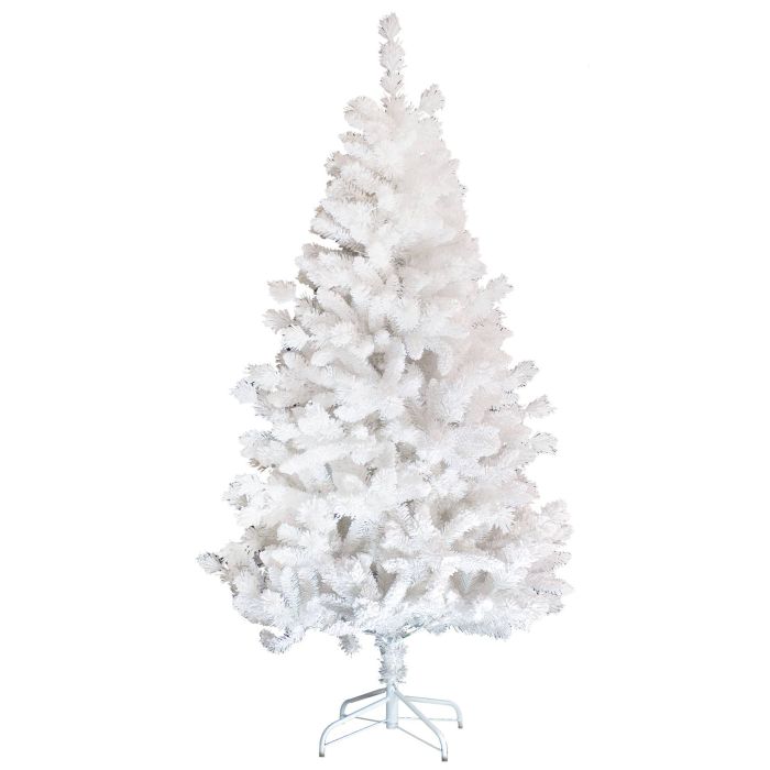 Albero natalizio/Abete artificiale GÖTEBORG di colore bianco con supporto metallico composto da aghi in PVC. L'abete natalizio alto ca. 180 cm ha un diametro di ca. 90 cm ed è adatto come decorazione per soggiorni o ristoranti, vetrine, stand fieristici, ecc.