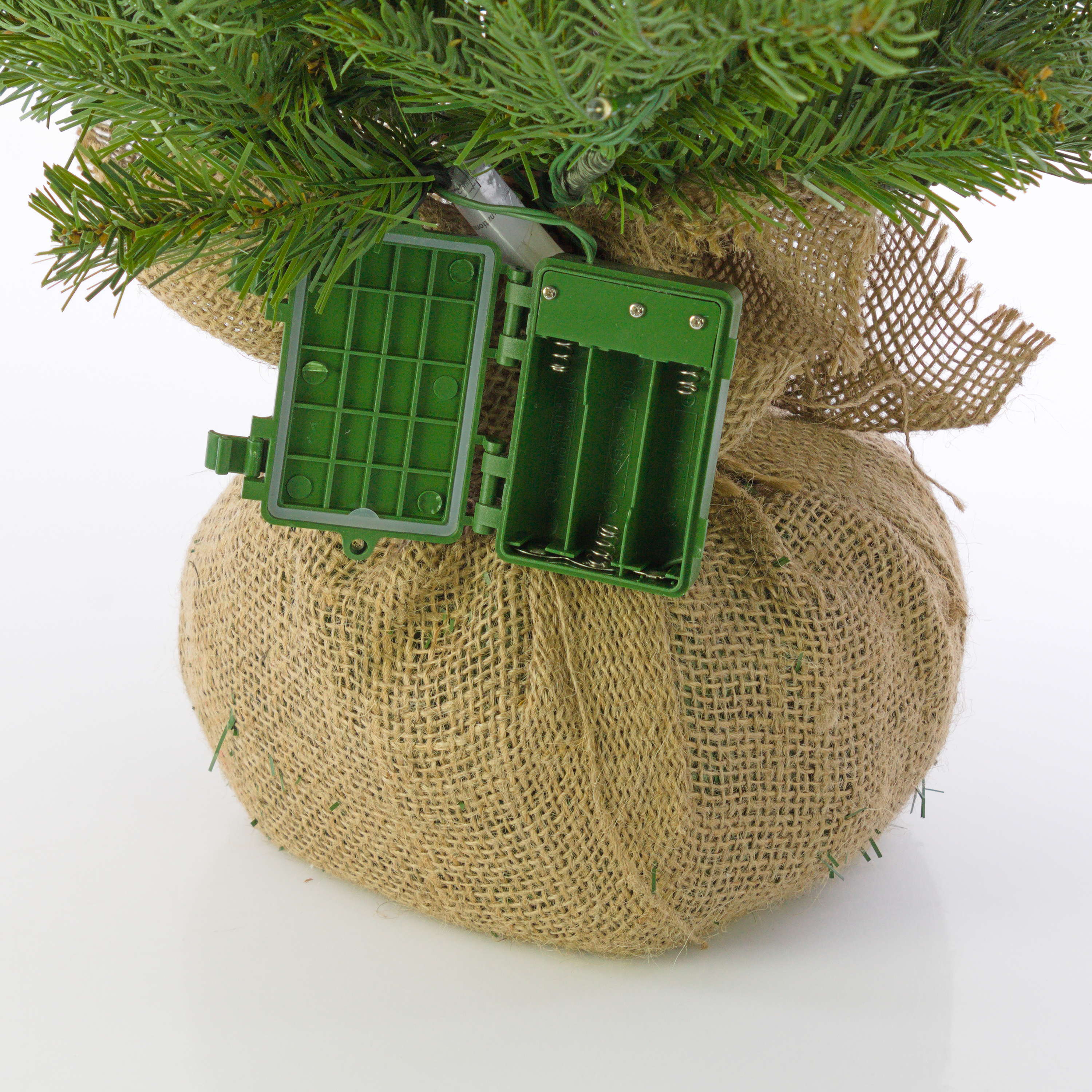 Albero di Natale finto WELLINGTON, sacco di iuta, LEDs, 90cm, Ø65cm