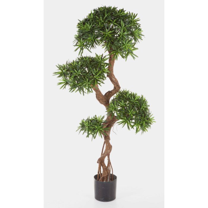 Pianta del genere Podocarpus con tronco artificiale spiraliforme e 4100 foglie di materiale tessile dalla costruzione elegante.L´albero artificiale ha un´altezza complessiva di ca. 130cm.