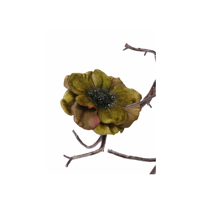 Anemone artificiale GORO su clip, verde oliva, Ø11cm