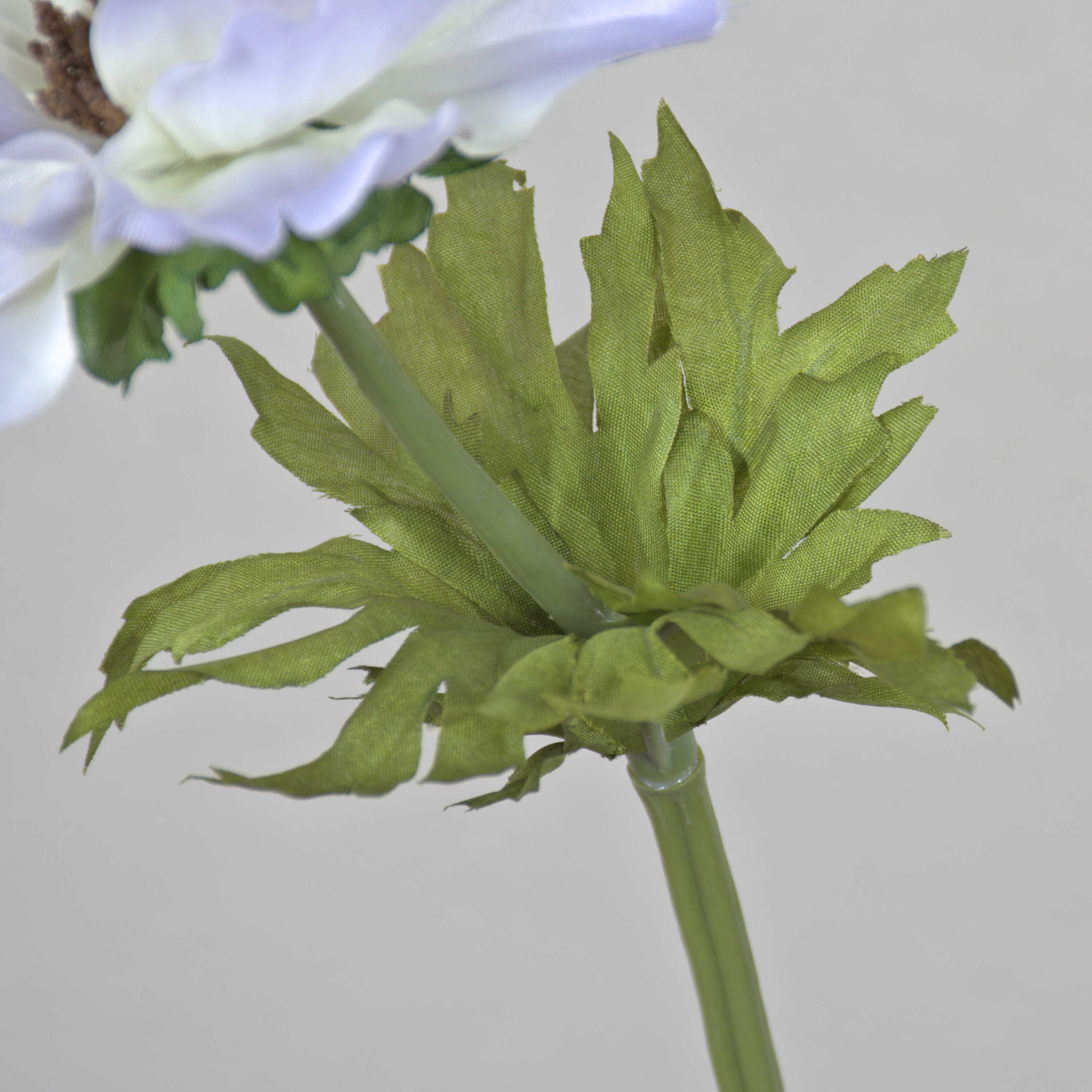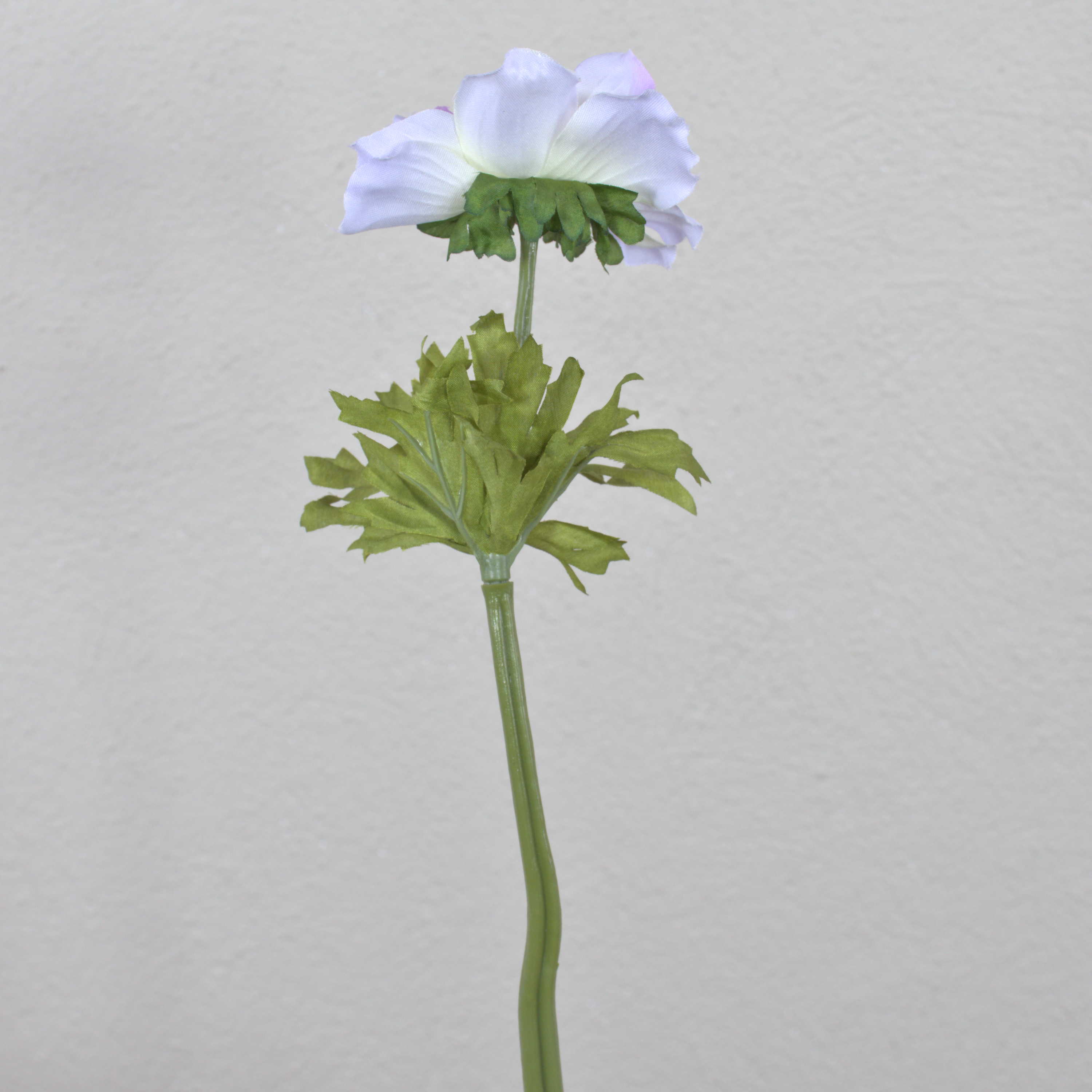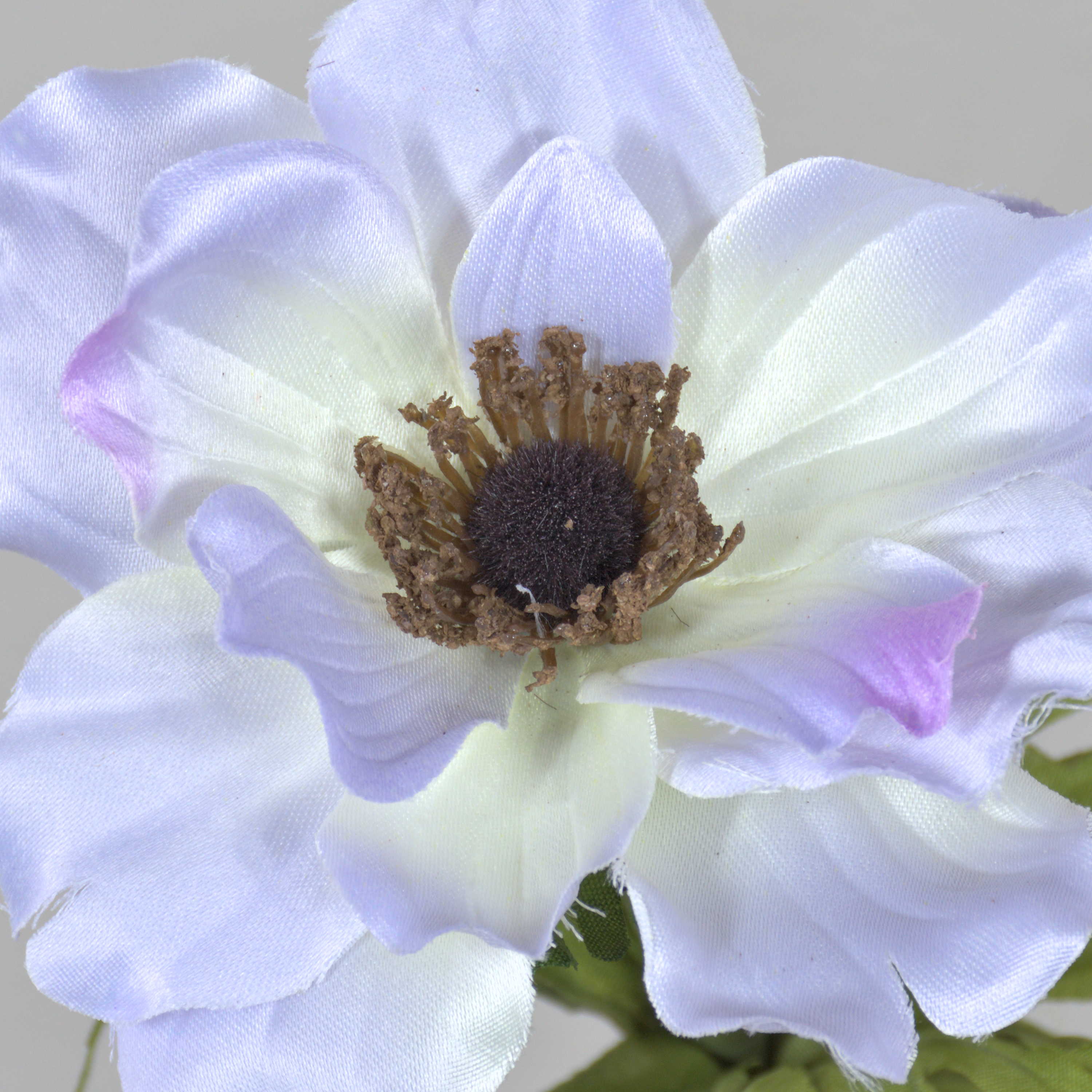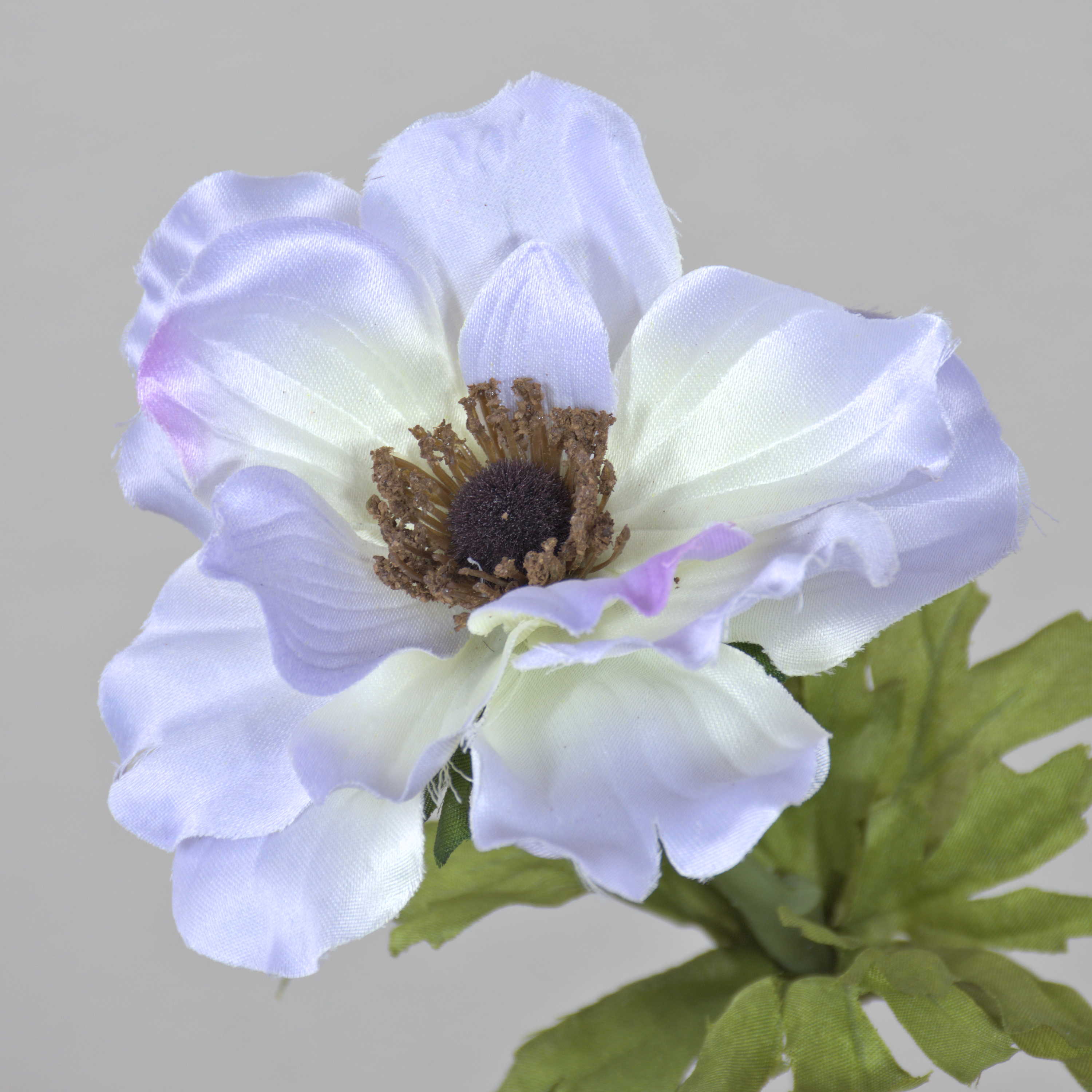 Anemone decorativo color lillá. Il fiore artificiale presenta foglioline verde chiaro e misura ca. 35cm in lunghezza.