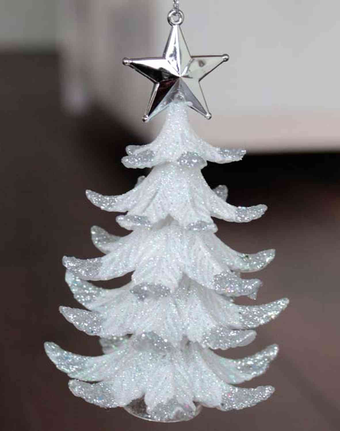 Appendino per albero di Natale RION con stella, acrilico, glitter, bianco-argento, 12cm, Ø9cm