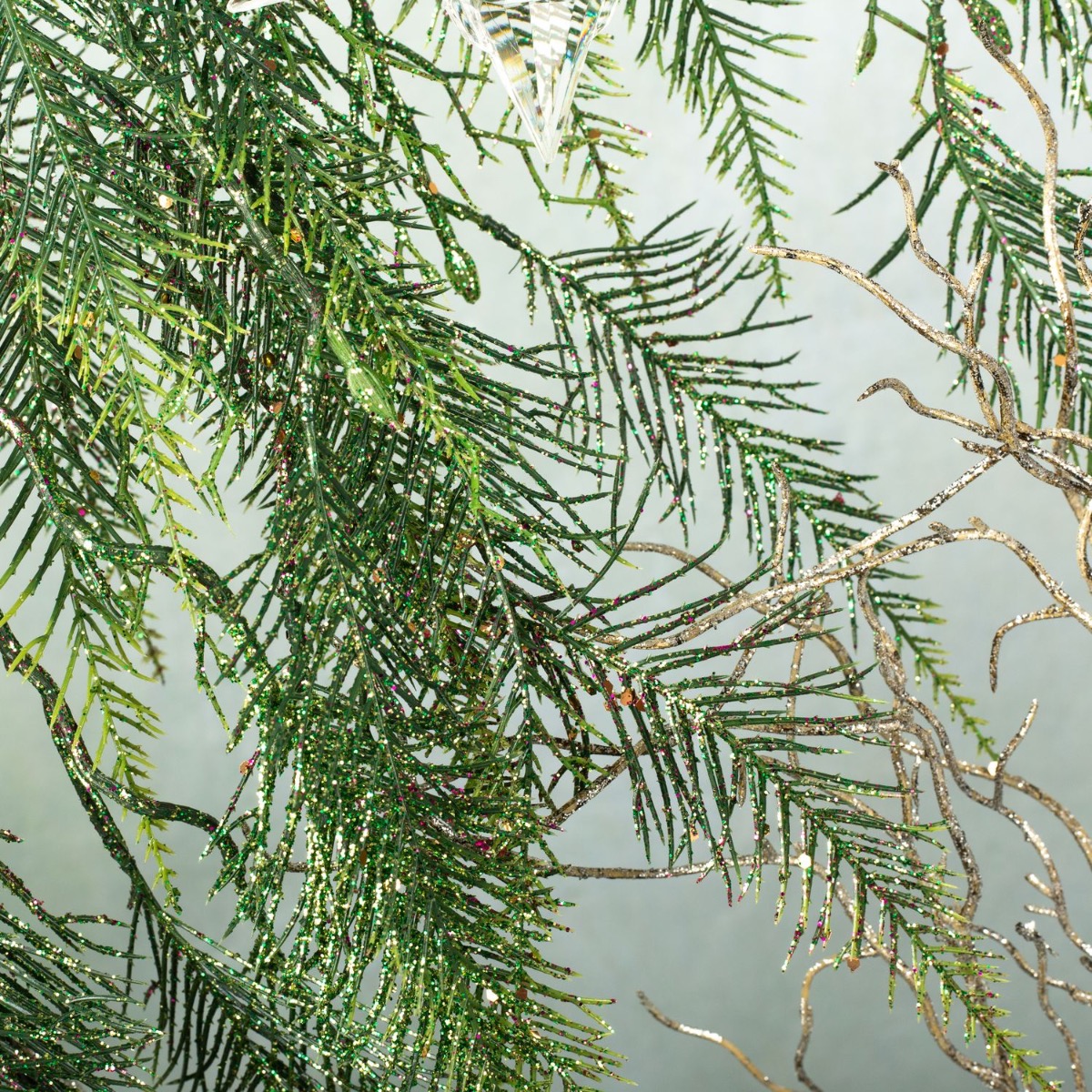 Argento e glitter! Il nostro look dell'Avvento è particolarmente elegante e può essere utilizzato anche come corona d'Avvento grazie alle sue 4 grandi candele a colonna. Una corona d'Avvento classica è sempre disegnata a forma di anello. La fede cattolica lo utilizza per descrivere la resurrezione e l'eternità della vita. Il nostro anello metallico autoportante, che si presta anche a grandi idee di decorazione dopo il periodo natalizio, è stato decorato con ramoscelli scintillanti e ornamenti per l'albero di Natale. Il vassoio di legno grigio è stato riempito con il nostro muschio verde naturale, perché il verde rappresenta la speranza e la vita. Questo look è un inizio straordinario per la stagione natalizia. Acquistate il look!