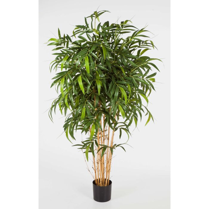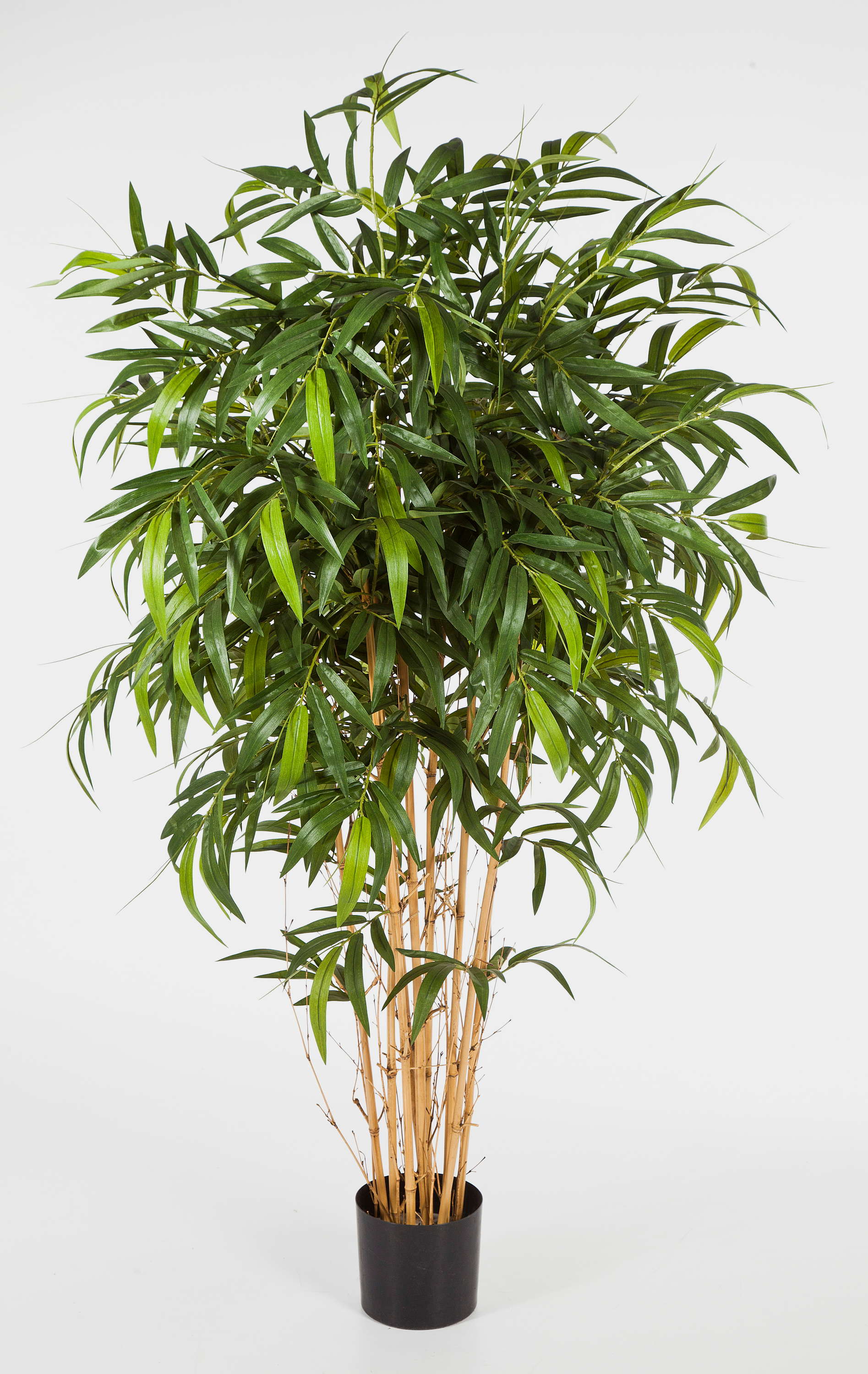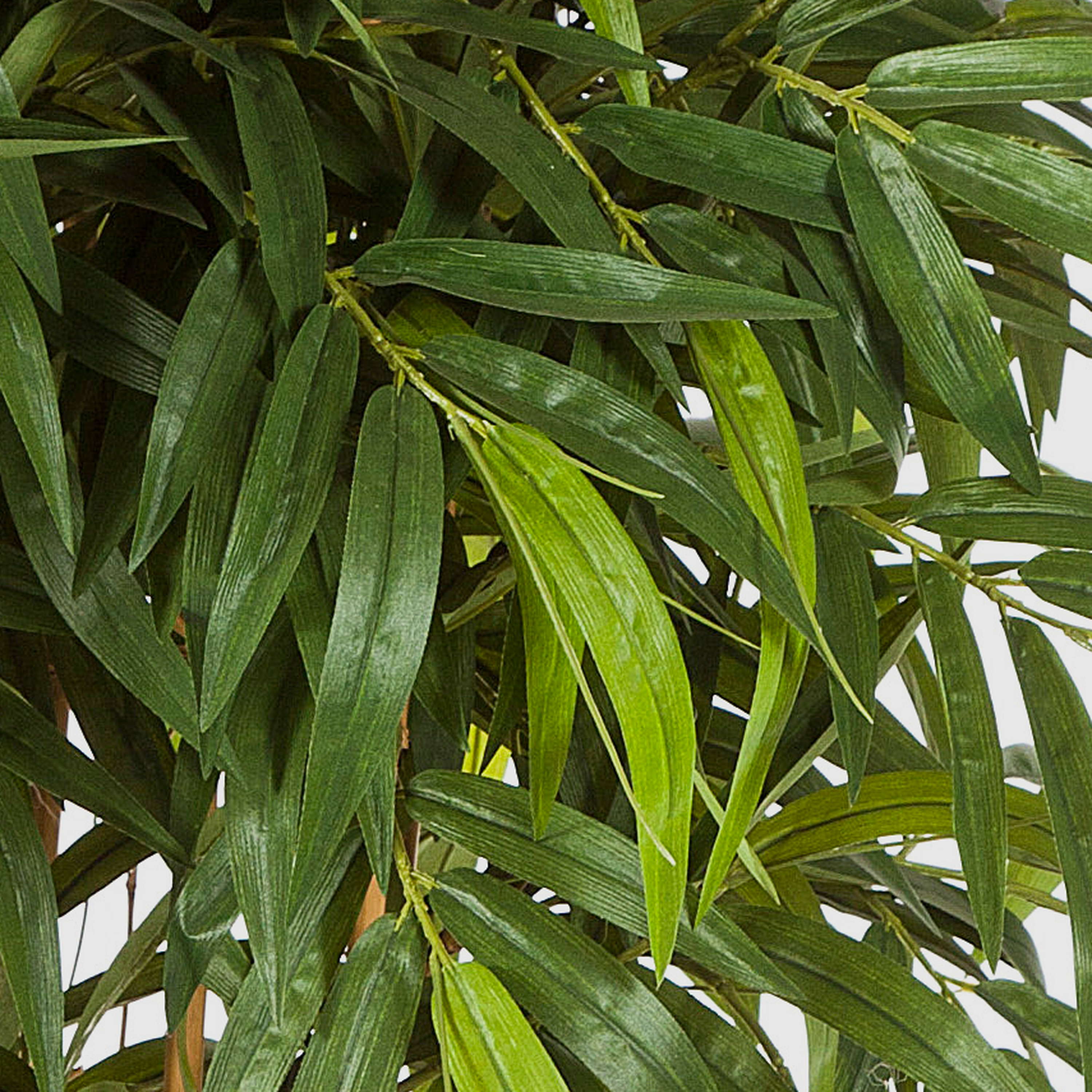 Il bambù artificiale KATSUMI spicca grazie alle sue foglie naturali e dalla tipica forma delle foglie del bambù. Numerosi tronchi naturali aggiungono alla pianta di bamú ornamentale, alta ca. 240 cm, un aspetto realistico.