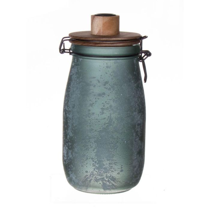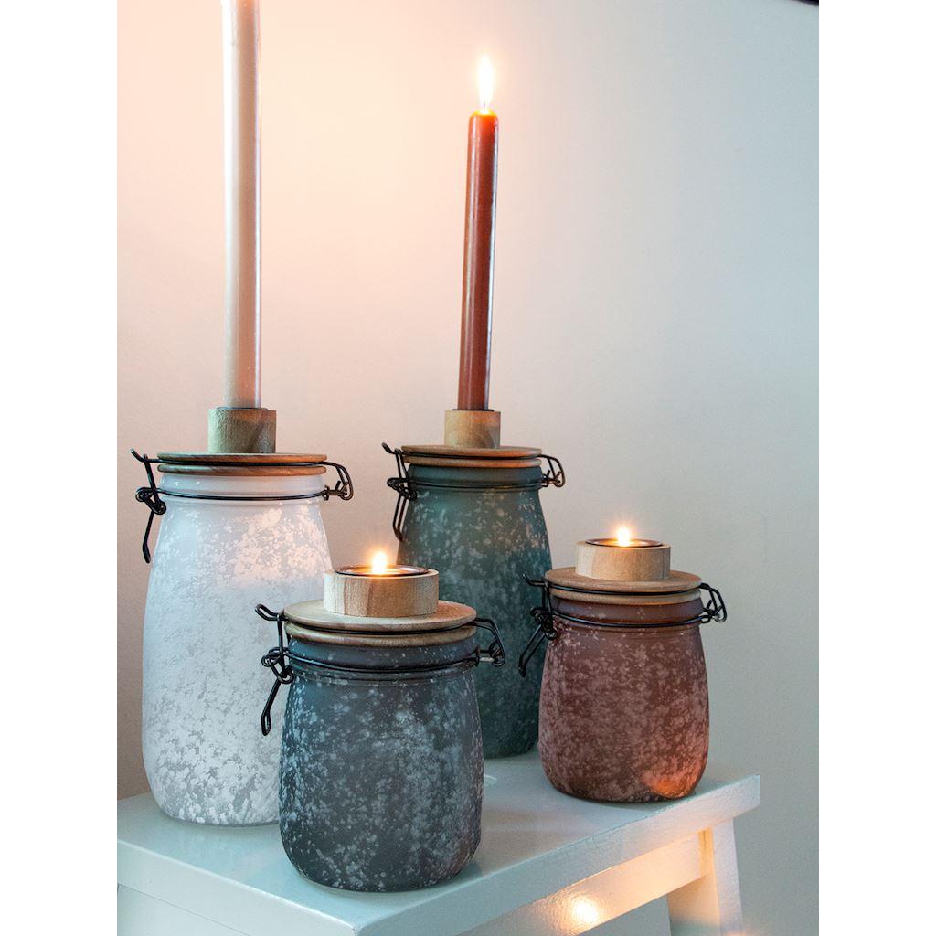 Barattolo con tappo mecanico ANNEDORE con portacandela a bastoncino, effetto brina, verde petrolio, 24,5cm, Ø11,5cm