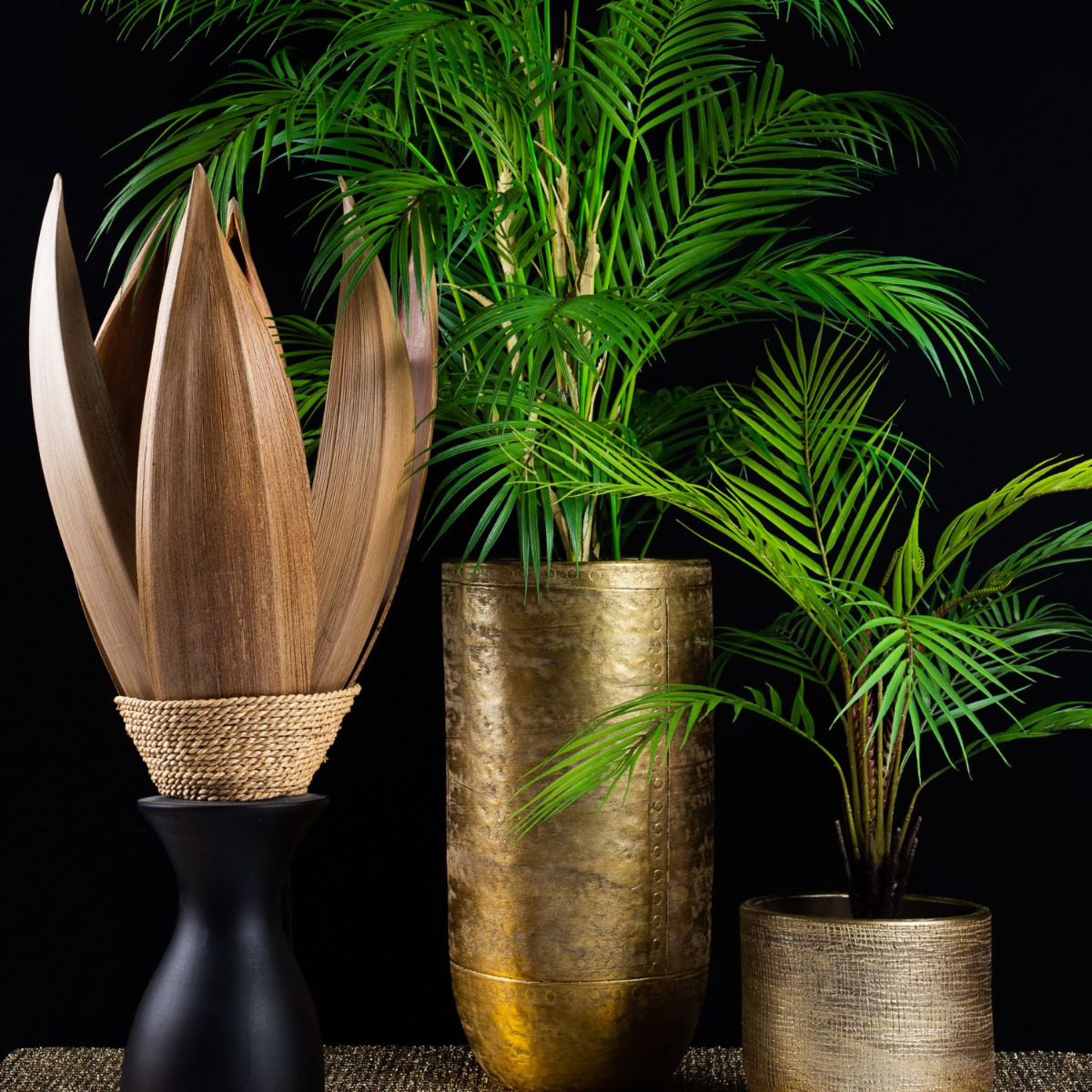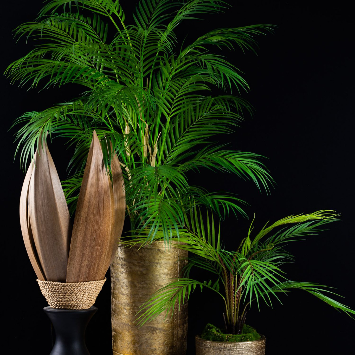 Suggerimento per la progettazione: Determinate voi stessi l'altezza delle palme con la tecnica idroponica. Una lampada fa brillare le foglie e i vasi in modo particolare. Le fronde delle palme possono essere piegate in forma facilmente.
