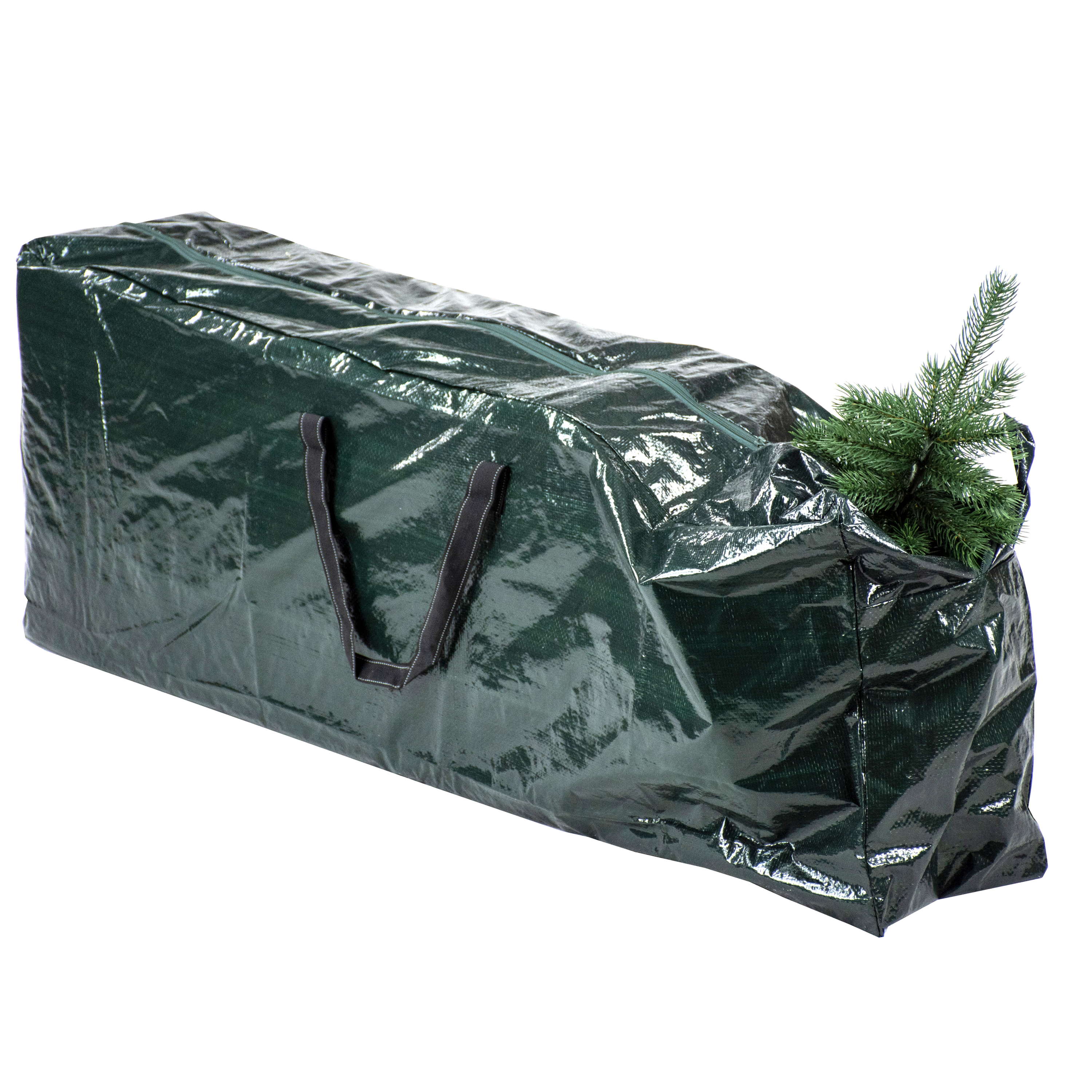 Borsa con manici in fibra (100% polipropilene) di colore verde e cerniera a lampo per conservare al meglio il vostro albero di Natale o le vostre piante artificiali da giardino con un’altezza massima di 120 cm.