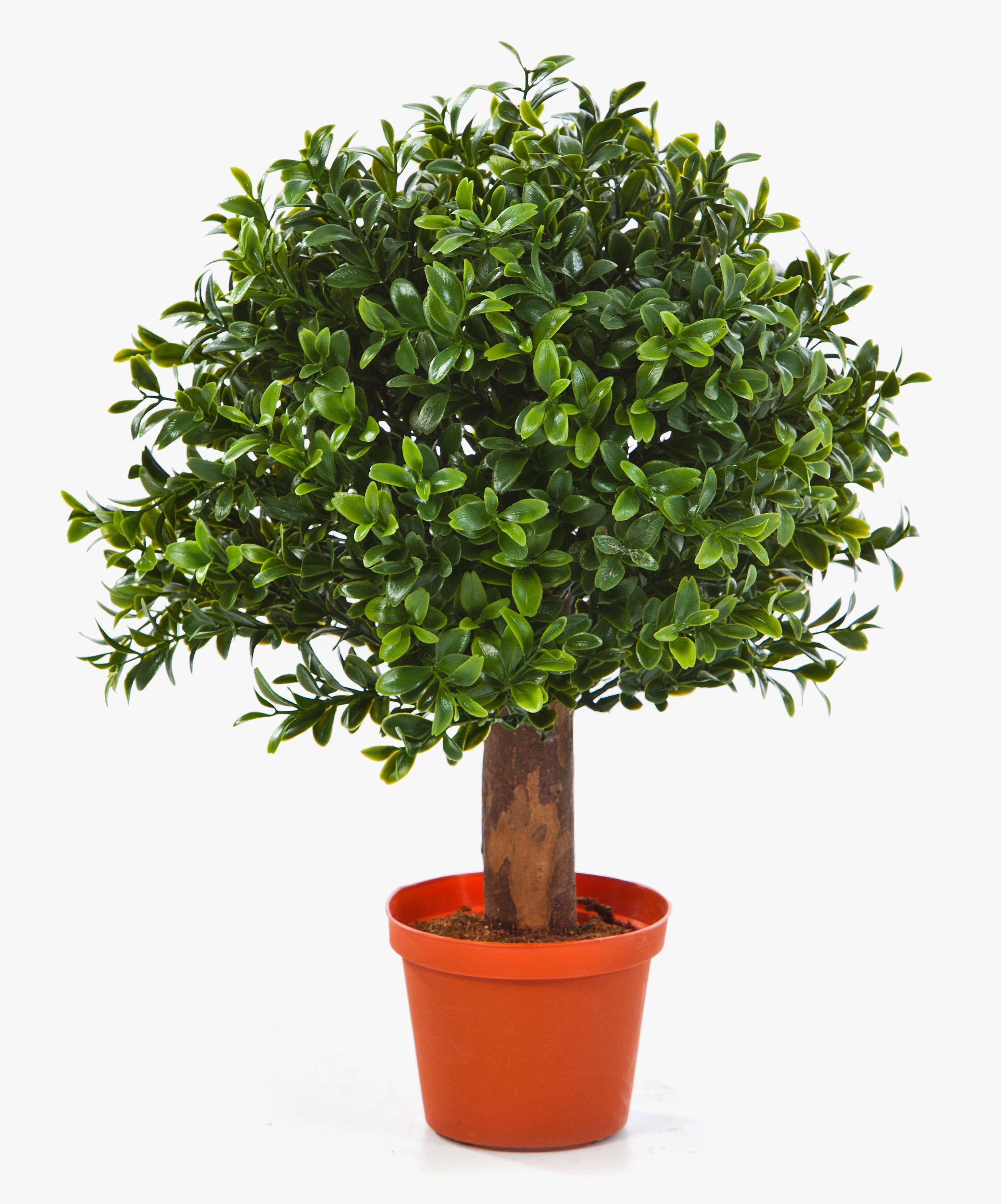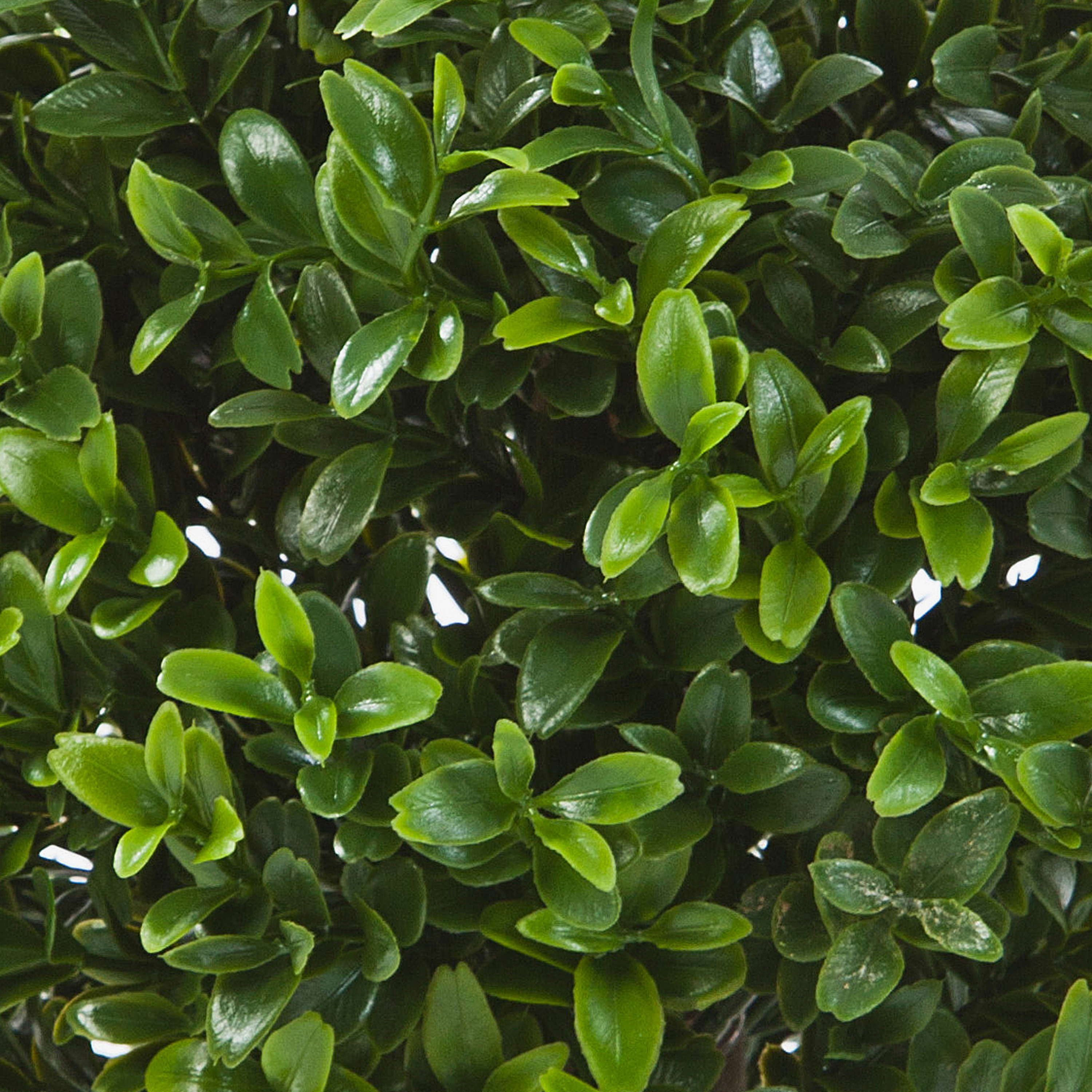 Cespuglio di bosso ornamentale TOM con ca. 250 foglie, un'altezza approssimativa pari a ca. 35 cm e un diametro di ca. 25 cm. L'elegante alberello di bosso ha foglie di alta qualità color verde chiaro e scuro dalle sembianze molto naturali.