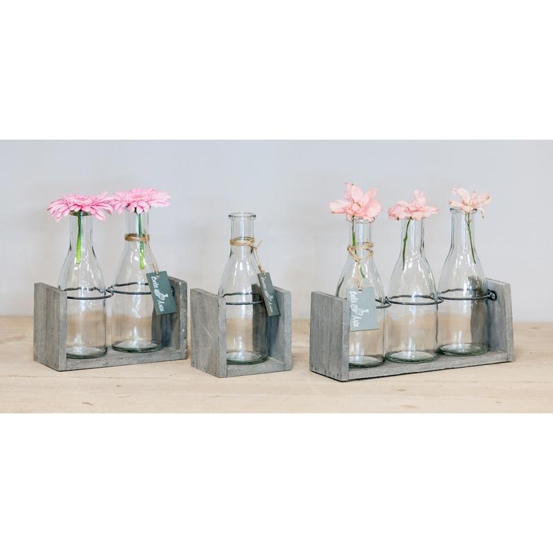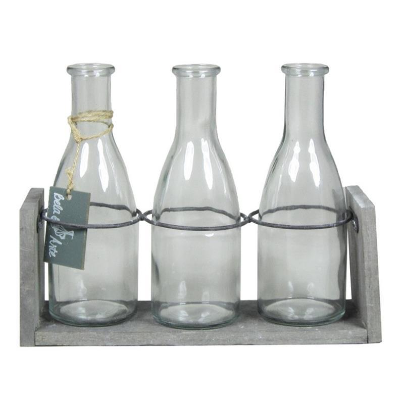Bottiglia ANYA in vetro, con supporto in legno, 3 bicchieri, trasparente, 25x8x20 cm