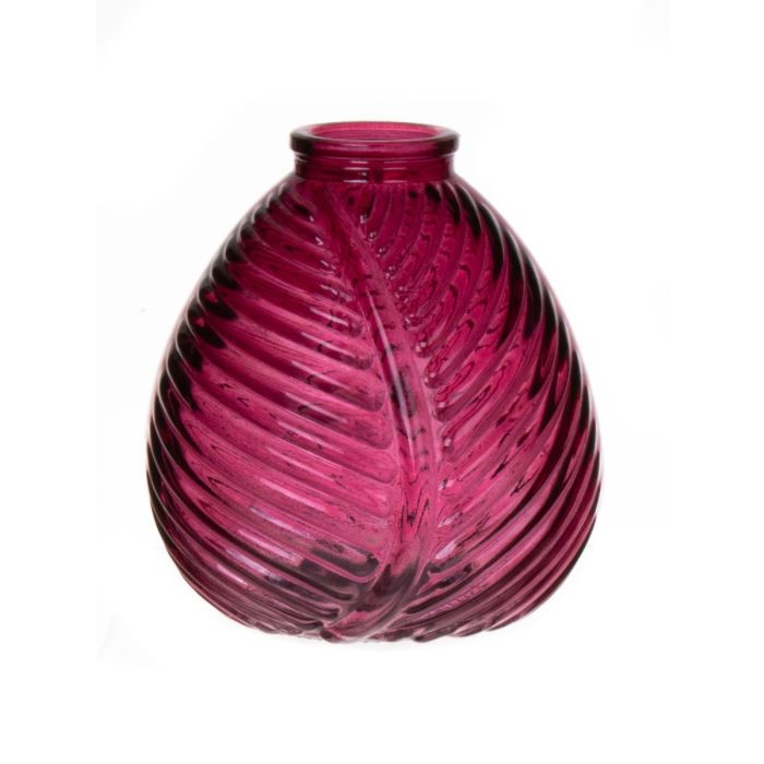 Bottiglia di vetro NELLOMIO con struttura a foglie, rosa-trasparente, 13cm, Ø12cm