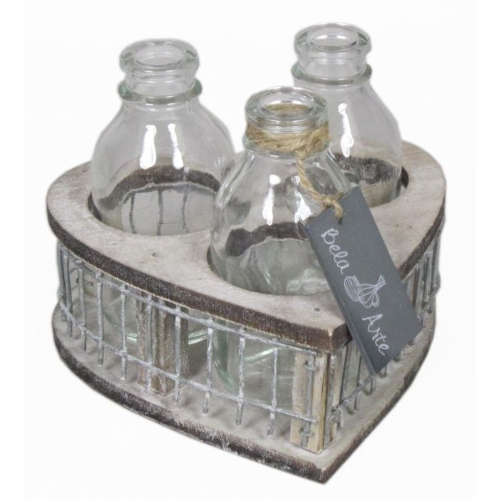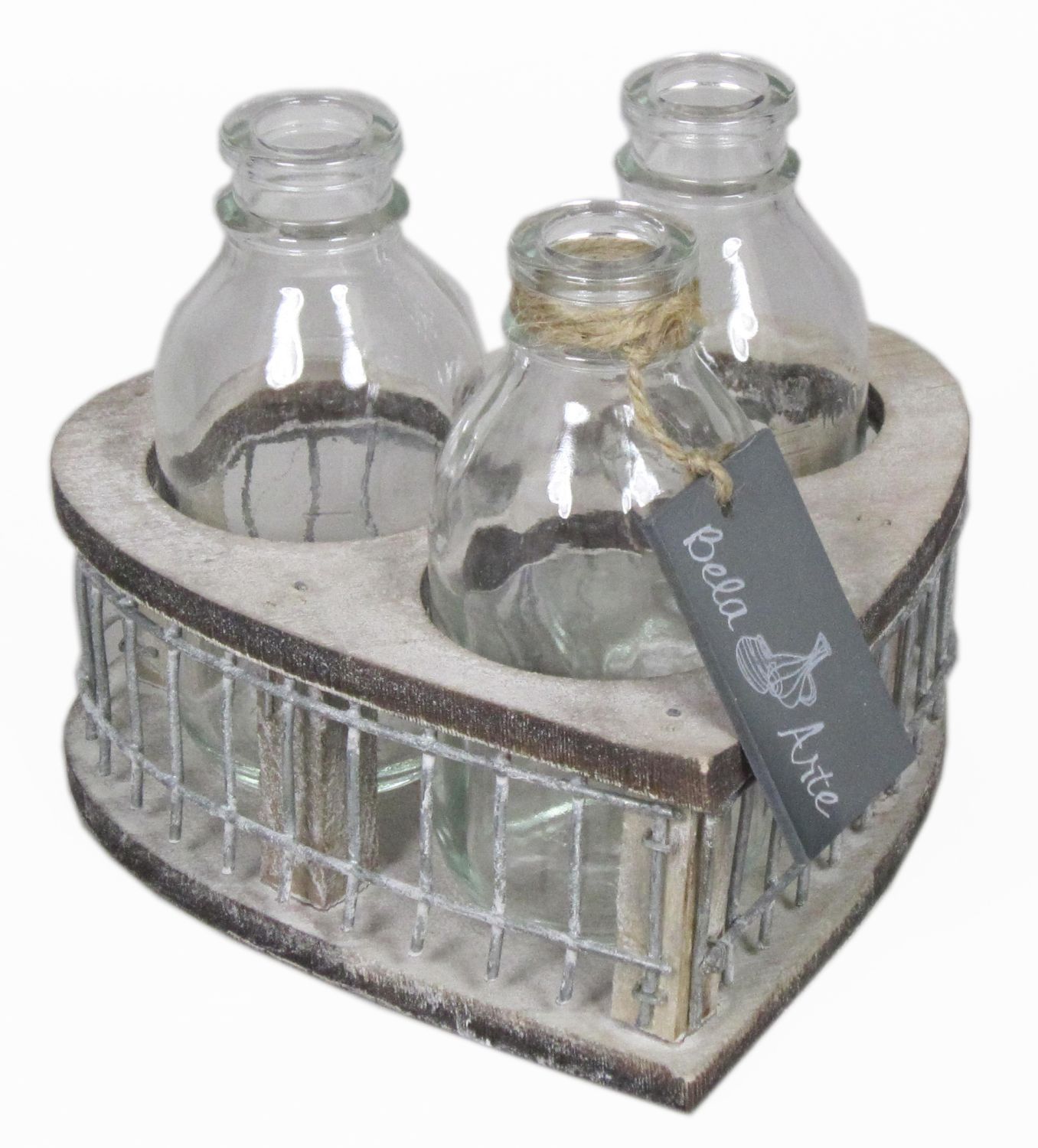 Bottiglie di vetro decorative LEATRICE OCEAN in scatola di legno, 3 vetri, trasparente, 11cm, Ø15cm
