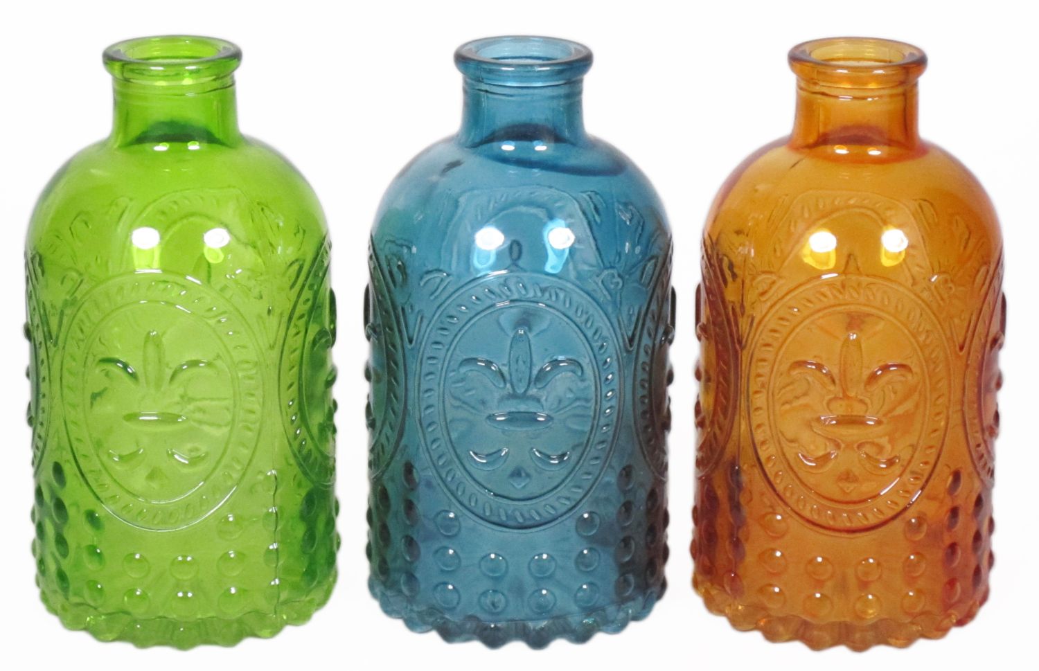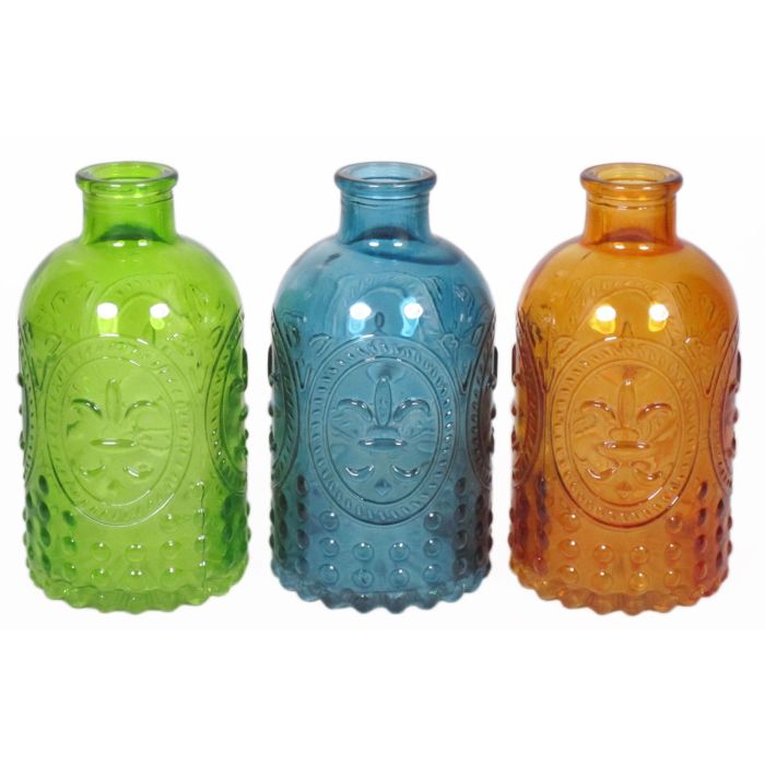 Bottiglie di vetro decorative URSULA con motivo, 3 vetri, multicolore, 12,5cm, Ø6,5cm