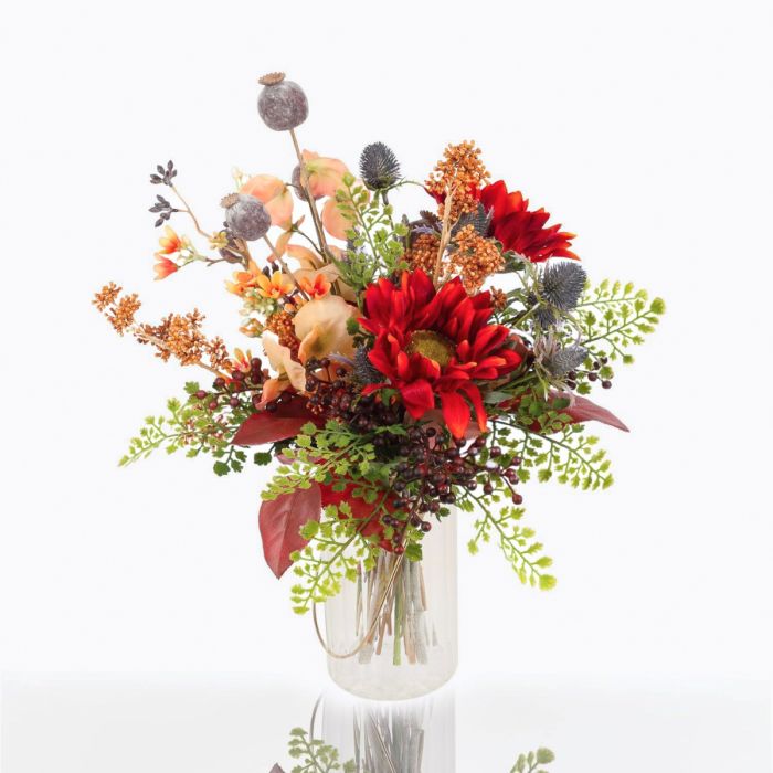 Bouquet artificiale autunnale HELENA, girasole, rosso, 40cm, Ø35cm