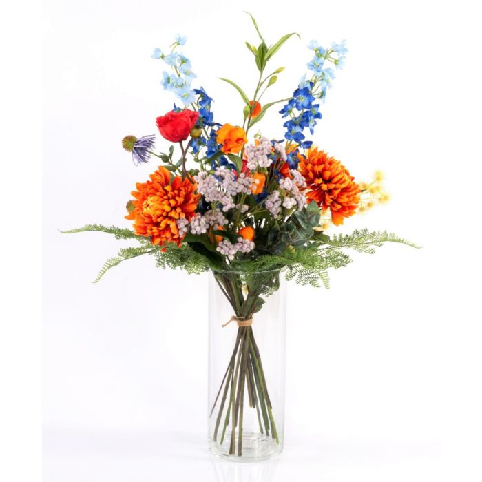 Bouquet artificiale estivo LOLANA, delphinium, arancione-blu, 70cm, Ø50cm