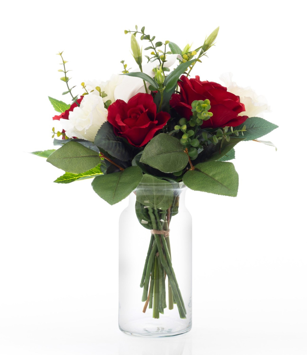 Bouquet da sposa artificiale ELAYNA, rosso-bianco, 35cm, Ø30cm