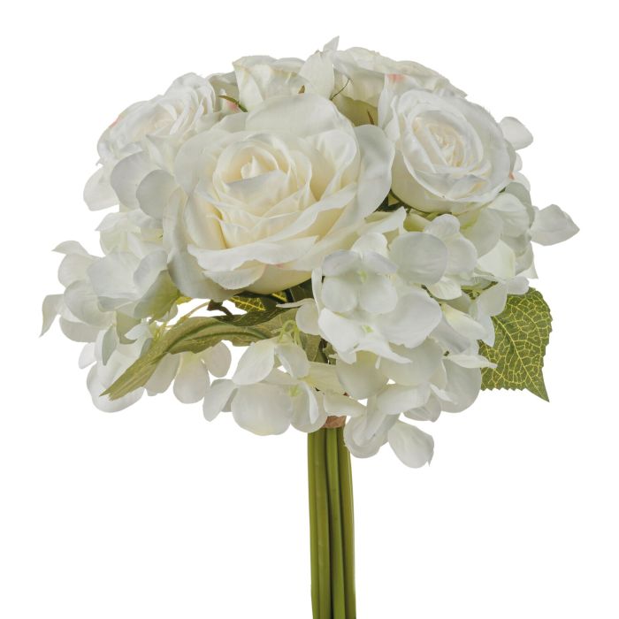 Bouquet di fiori artificiali FOUDILA, rose, ortensie, bianco, 25cm