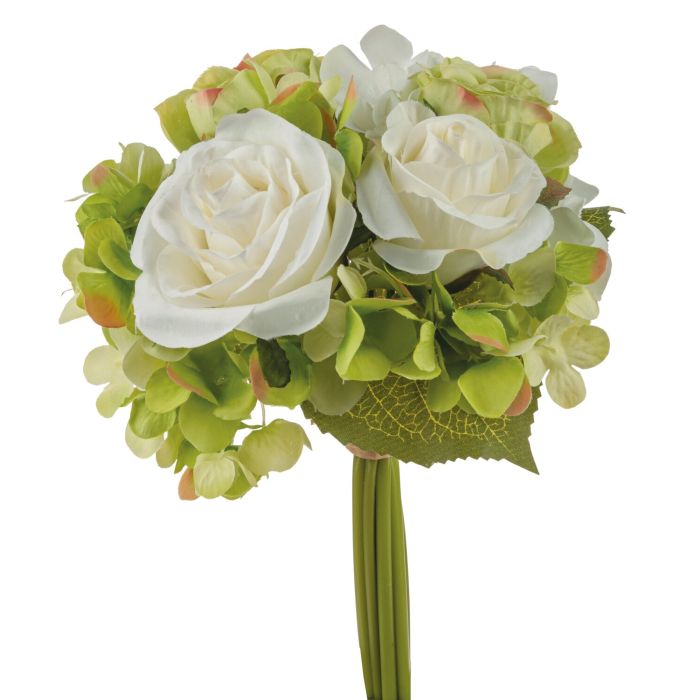 Bouquet di fiori artificiali FOUDILA, rose, ortensie, crema-verde, 25cm