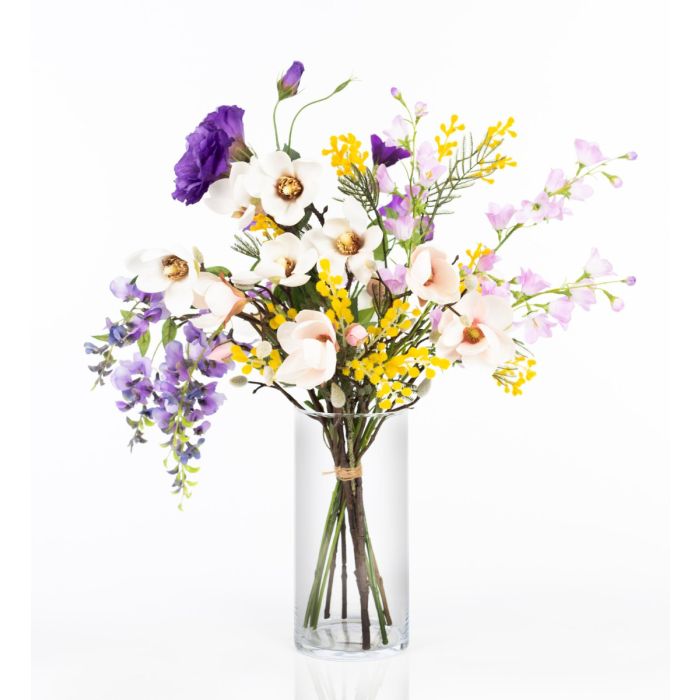 Bouquet di fiori artificiali primaverili CALISSA, giallo-viola, 60 cm, Ø40 cm