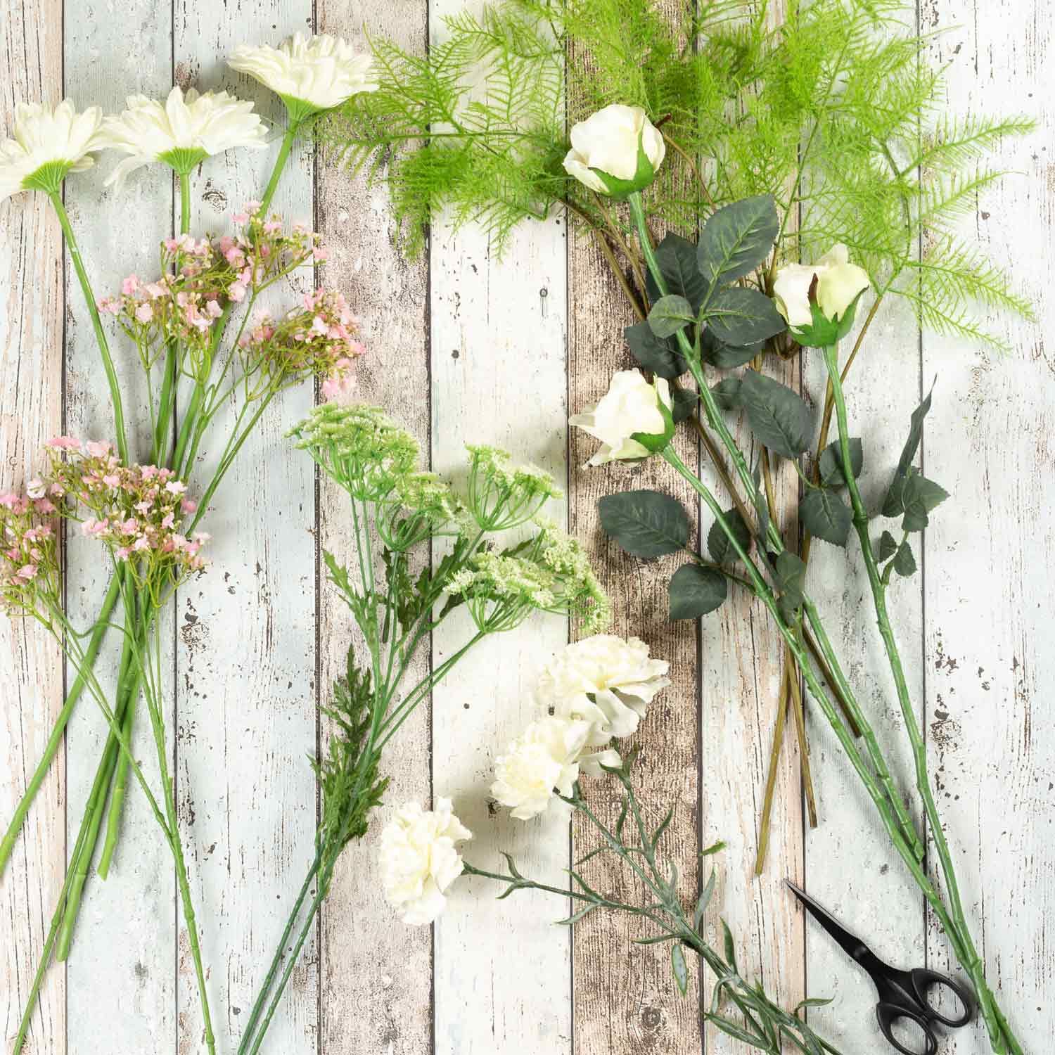 - Legati insieme con un cordone di sisal, i fiori e i rami possono essere accorciati singolarmente o utilizzati singolarmente per progetti creativi dopo aver rimosso il cordone