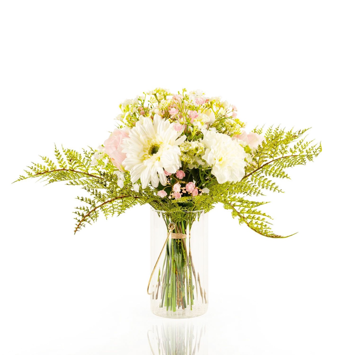 Bouquet di gerbera artificiale MALIA rosa, garofano, bianco-rosa, 40cm, Ø30cm