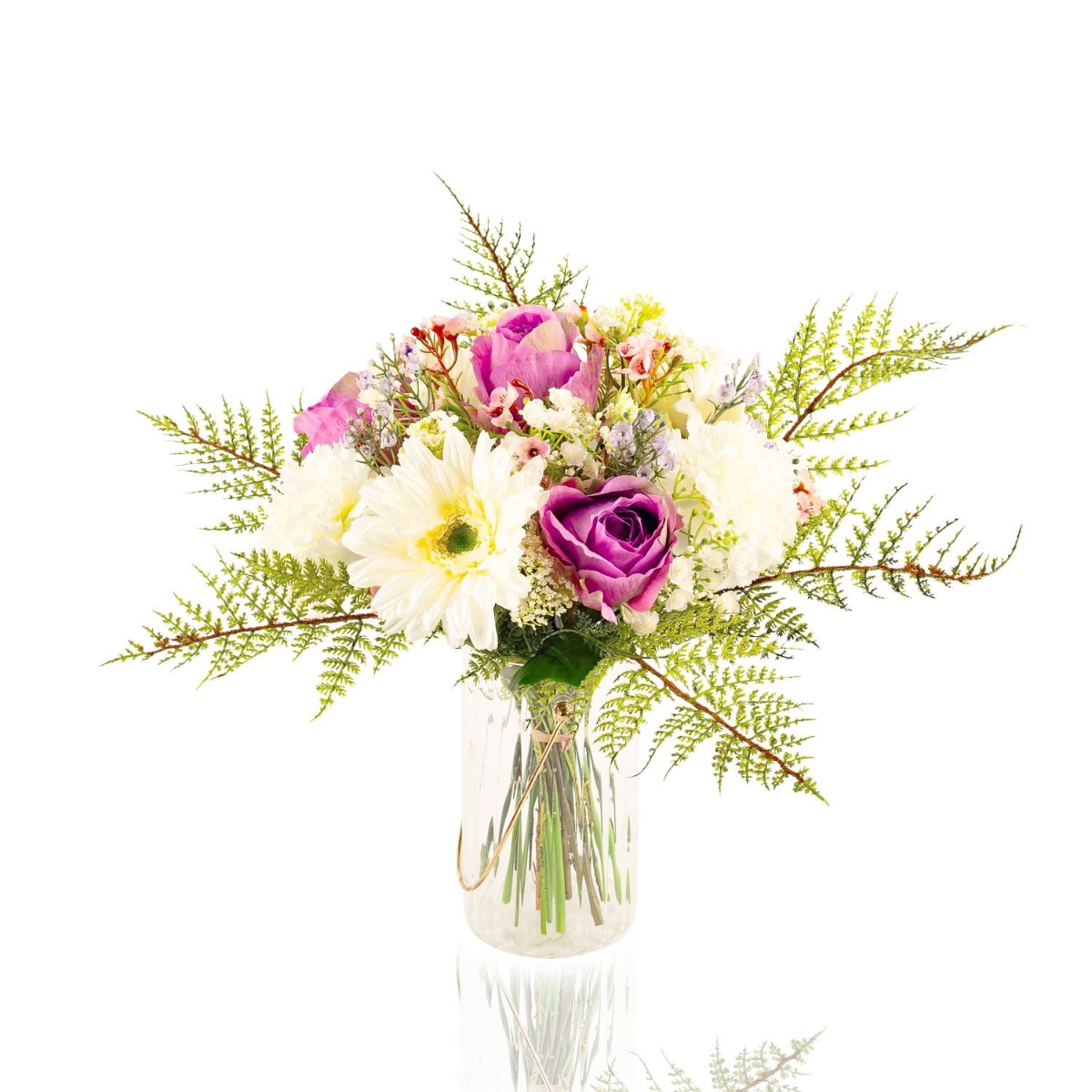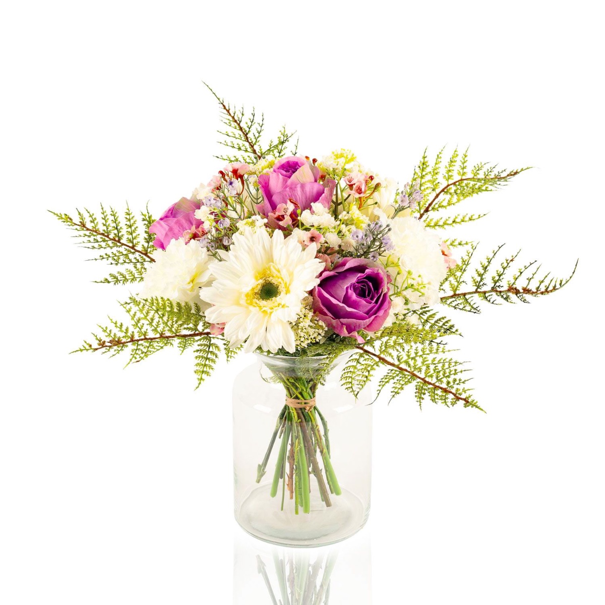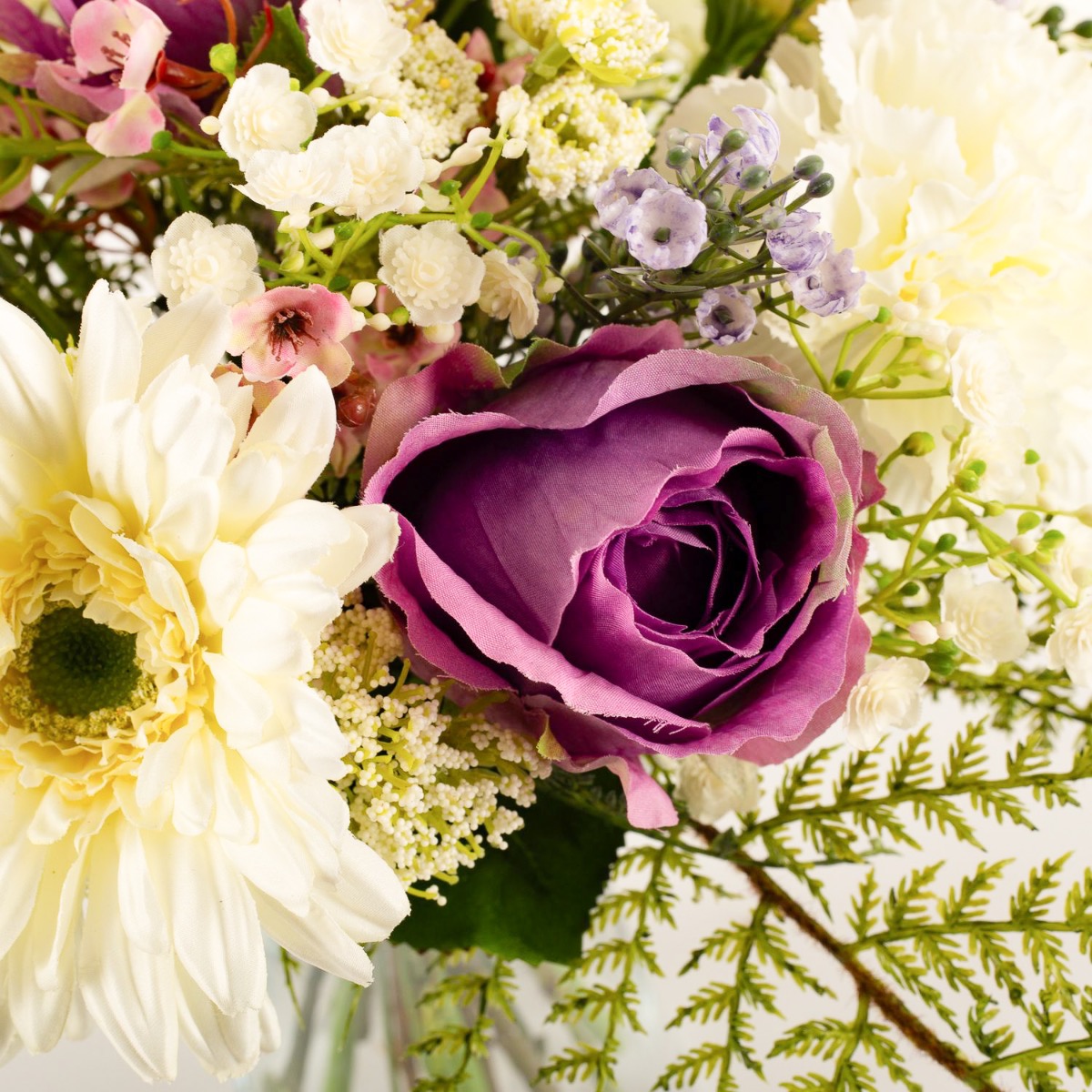 Bouquet di gerbera artificiale MALIA rosa, garofano, bianco-viola, 40cm, Ø30cm