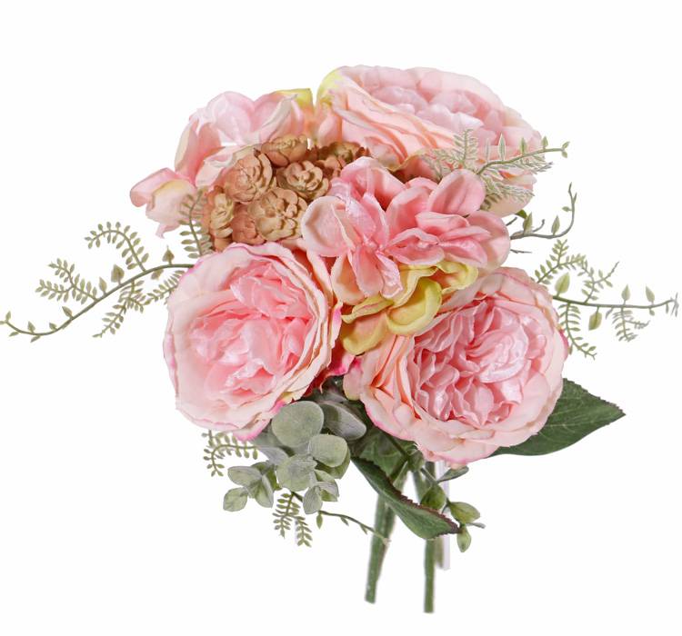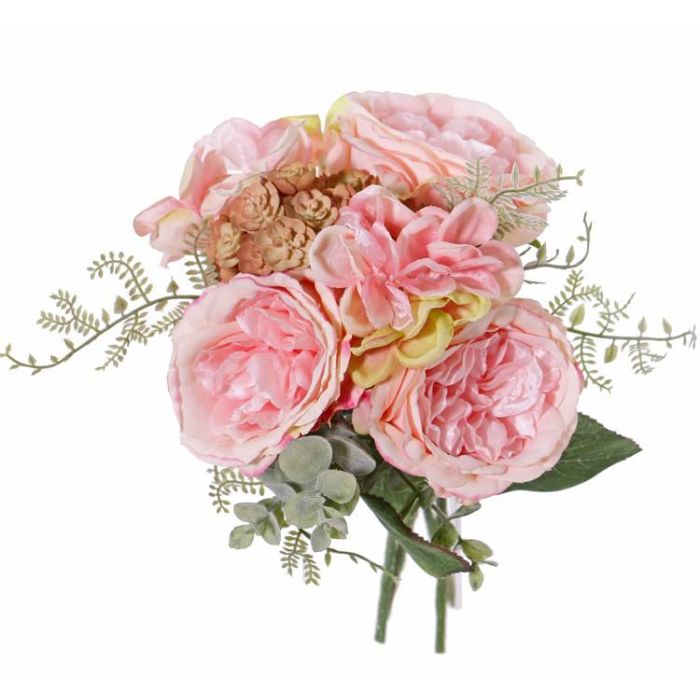 Bouquet di rose artificiali SIERRA ortensia, echeveria, rosa, 25cm, Ø25cm
