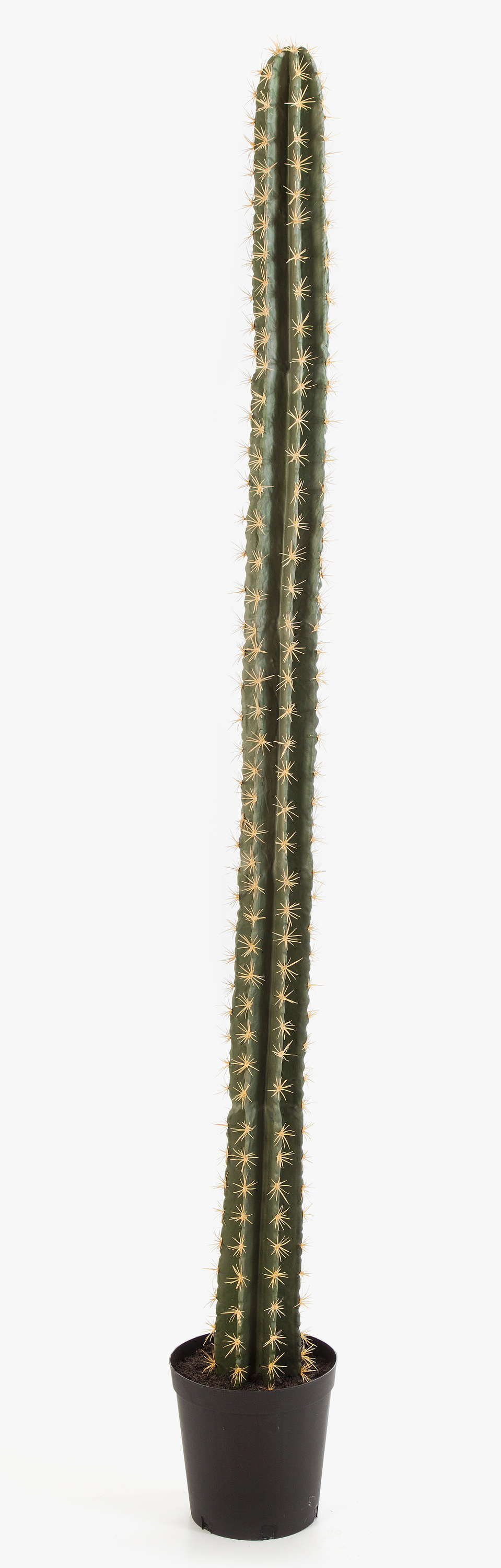Cactus artificiale grande realizzato in PU (Poliuretano) di alta qualità, verde e con aghi gialli. Questa pianta decorativa in vaso ha un'altezza complessiva di ca. 205 cm e funge da perfetta idea decorativa a tema tropicale.