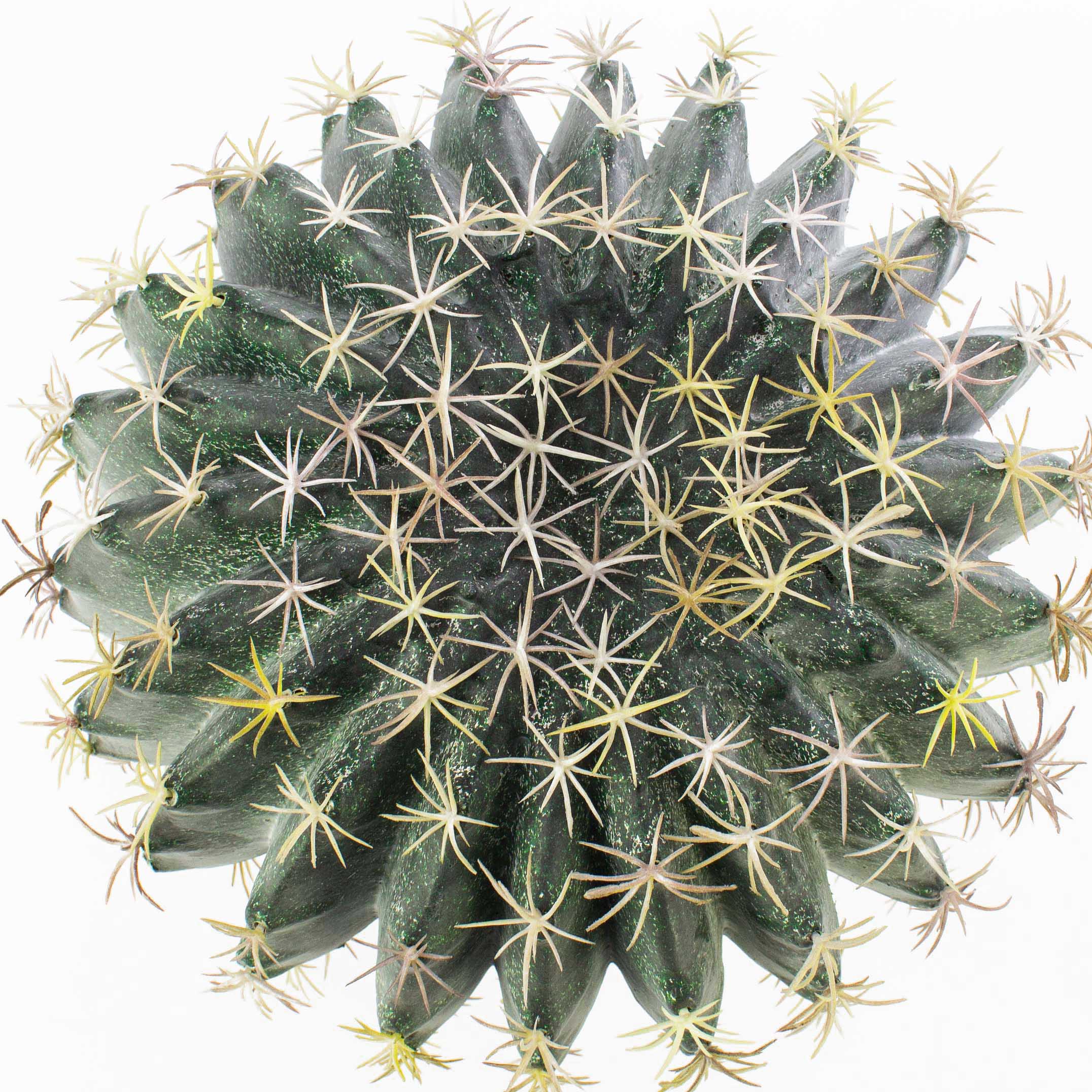 Cactus artificiale cuscino della suocera ELVIO con numerosi aculei di colore sfumato. Le spine pur sembrando reali non sono pericolose in quanto realizzate in materiale plastico. Il diametro totale del# echinocactus è di ca. 25 cm.