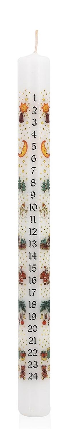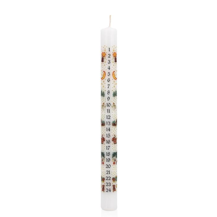 Calendario dell'Avvento candela a bastoncino LAMBERTINA, giorni dell'Avvento stampati, bianco-colorato, 25 cm, Ø 2,3 cm - Made in Germany
