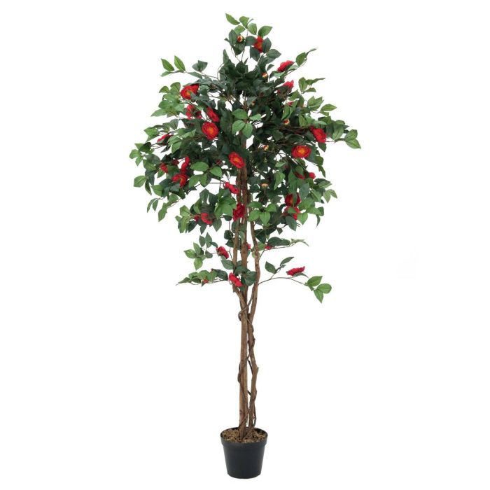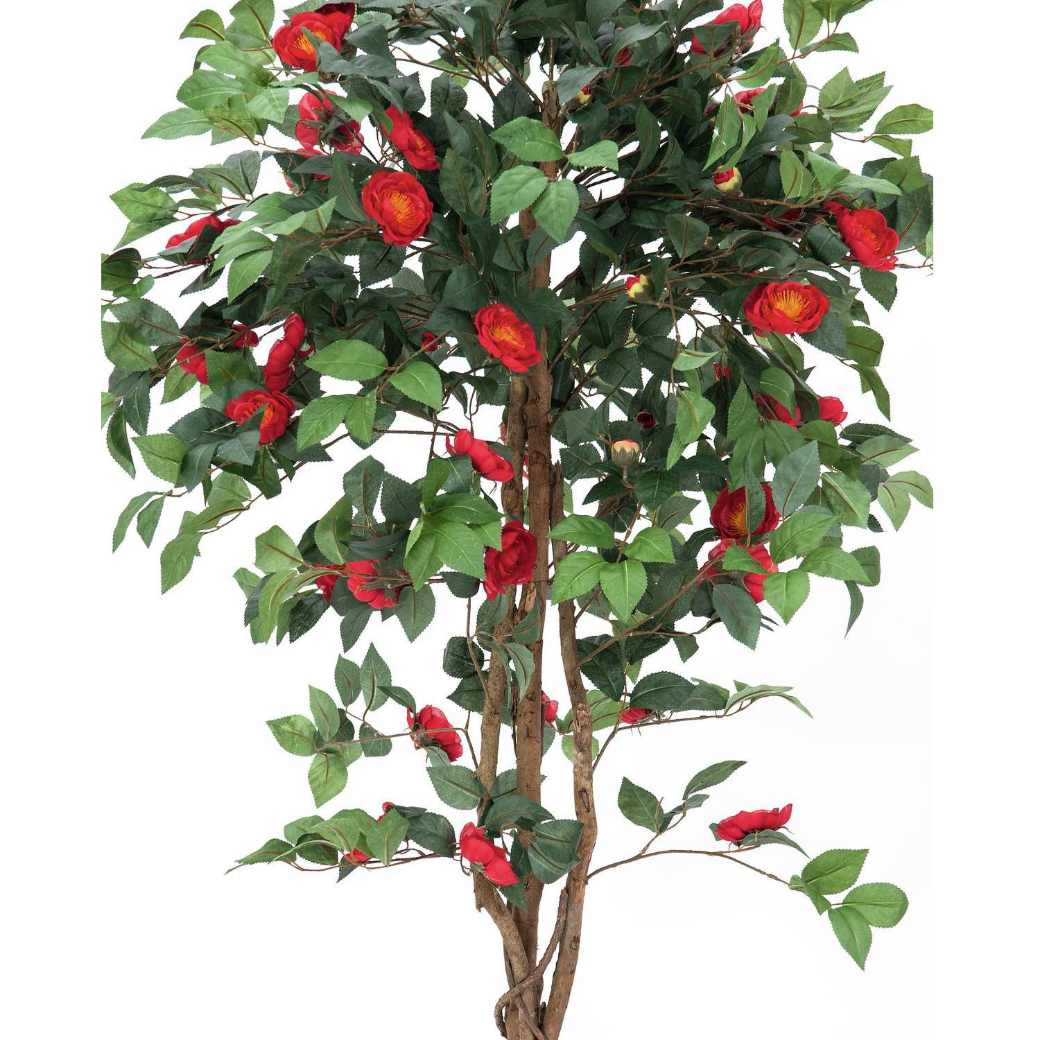 Camelia artificiale con chioma composta da ca. 1630 foglie e, arricchita da ca. 110 fiori di colore rosso. L´albero decorativo ha 3 tronchi naturali a cui si attorcigliano altrettanti viticci. Misura ca. 180cm in altezza.