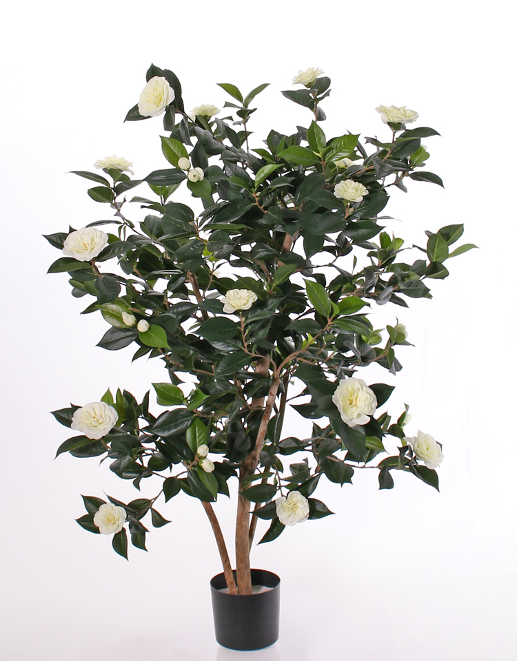 Camelia japonica artificiale SENTA, tronchi veri, fiori, crema, 135cm