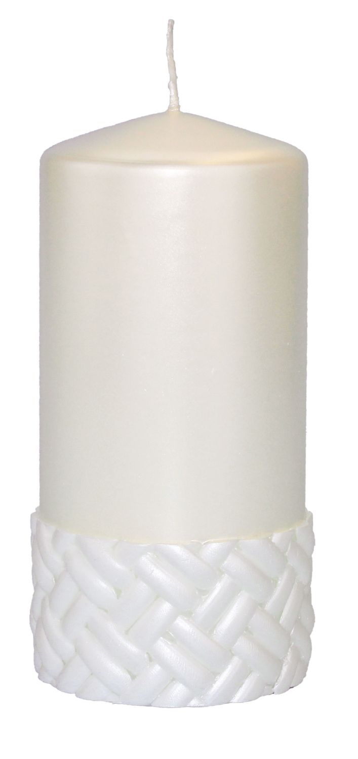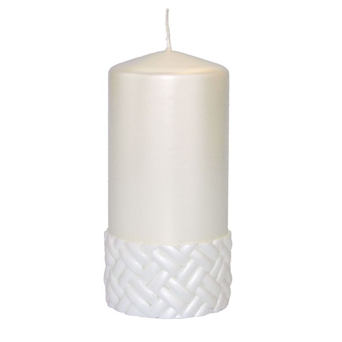 Candela a colonna festiva JULIETTA con motivo in seta, avorio, 15 cm, Ø 7 cm, 63 h