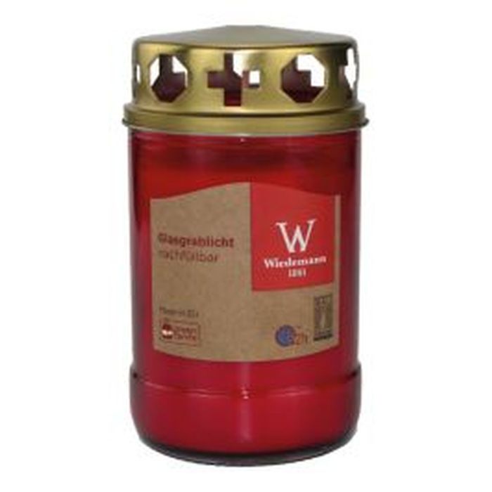 Candela da tomba in vetro SELENIA con coperchio, ricaricabile, rosso-bianco, 12,5 cm, Ø 6,8 cm, 52 h