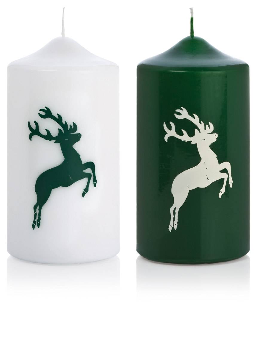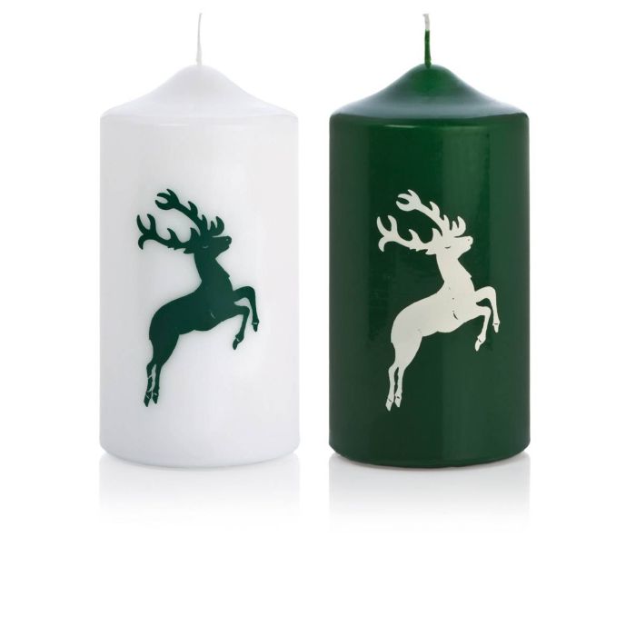 Candela dell'Avvento DALDI con motivo cervo, 2 pezzi, verde scuro-bianco, 15cm, Ø8cm, 69h - Made in Germany