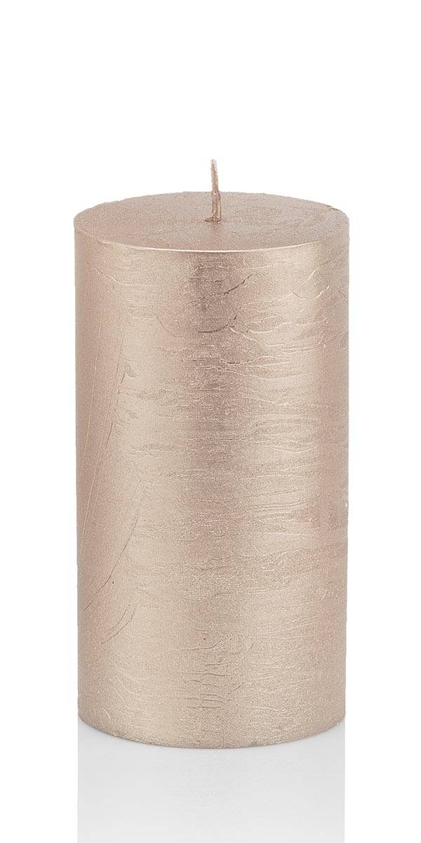 Candela festiva MATHILDA, rosa oro, 12cm, Ø5,8cm, 45h - Made in Germany